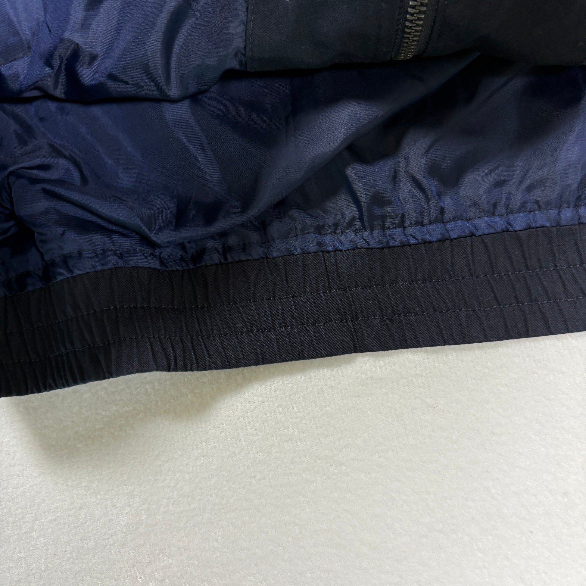 ✓ Navy blue shell with gray ribbed collar & cuffs