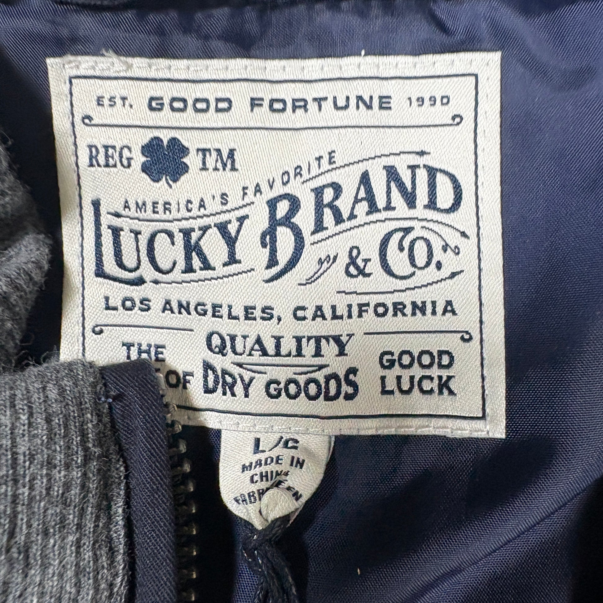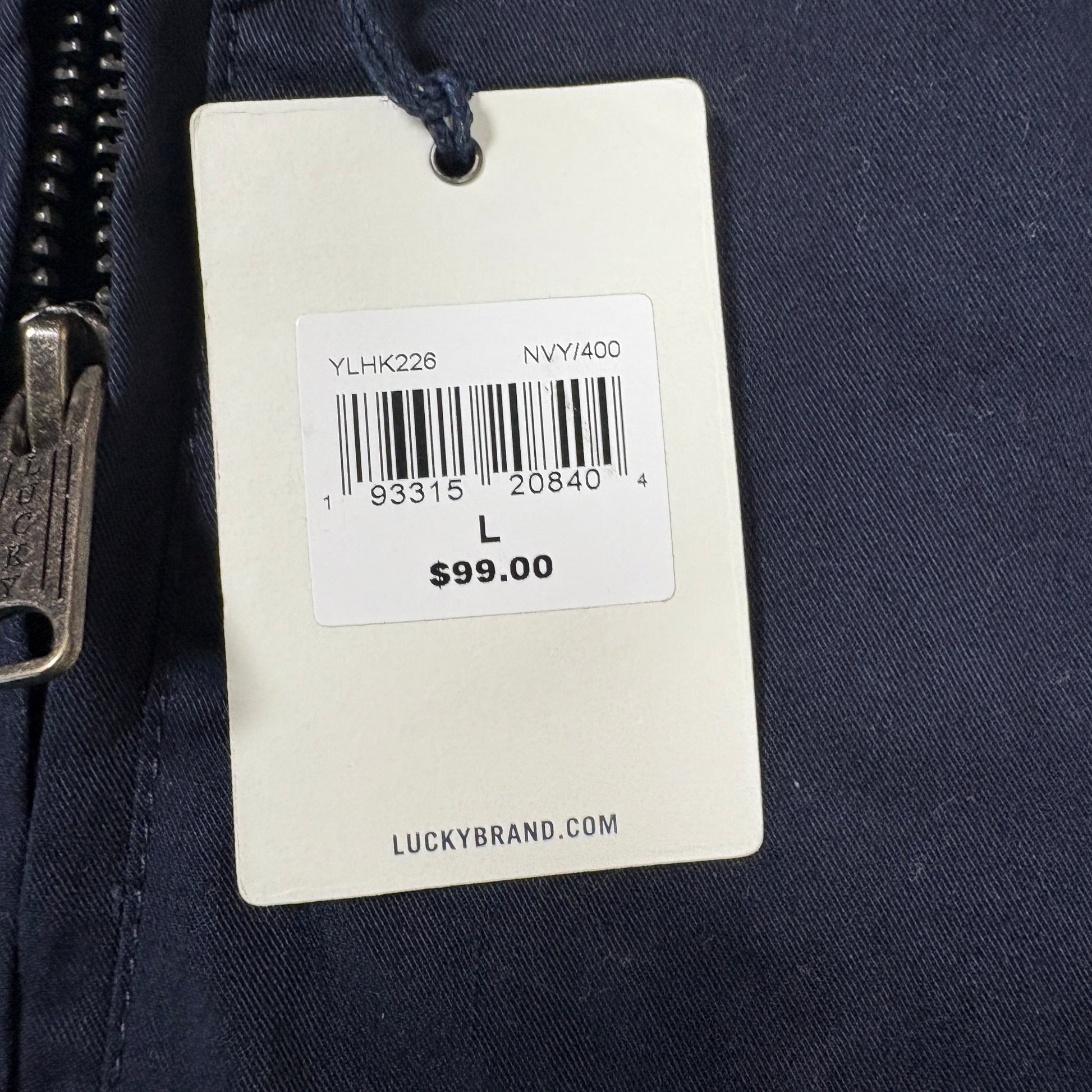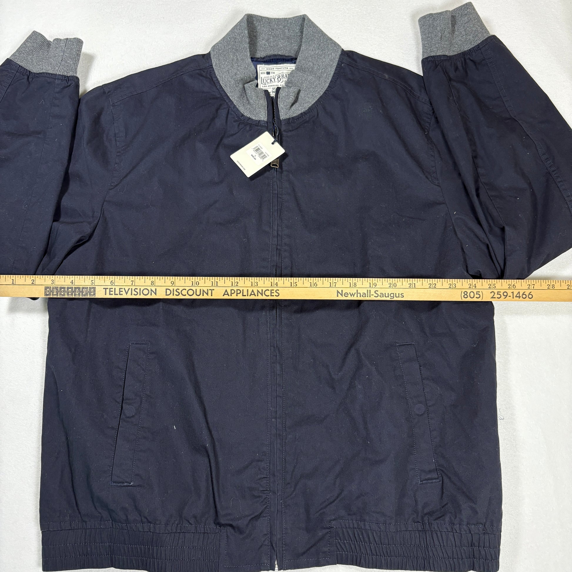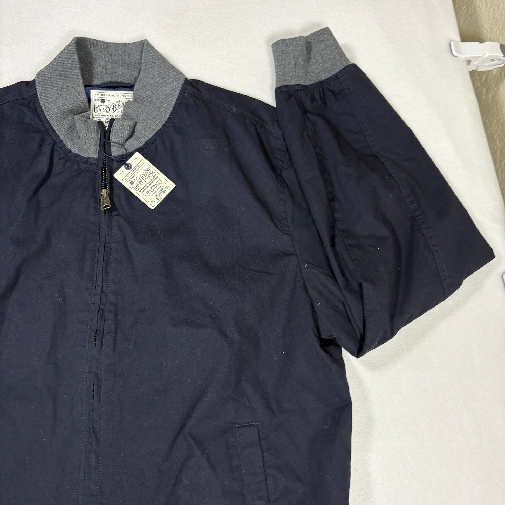 Lucky Brand Mens Jacket Size L Navy Blue Bomber Full Zip NWT $99 Rib Collar