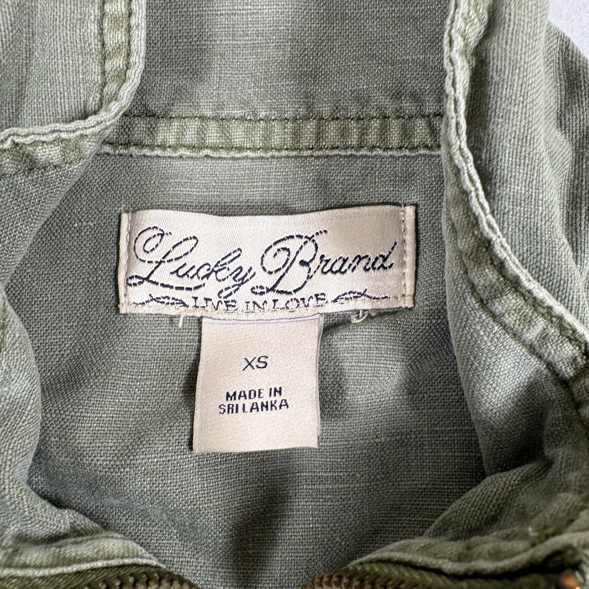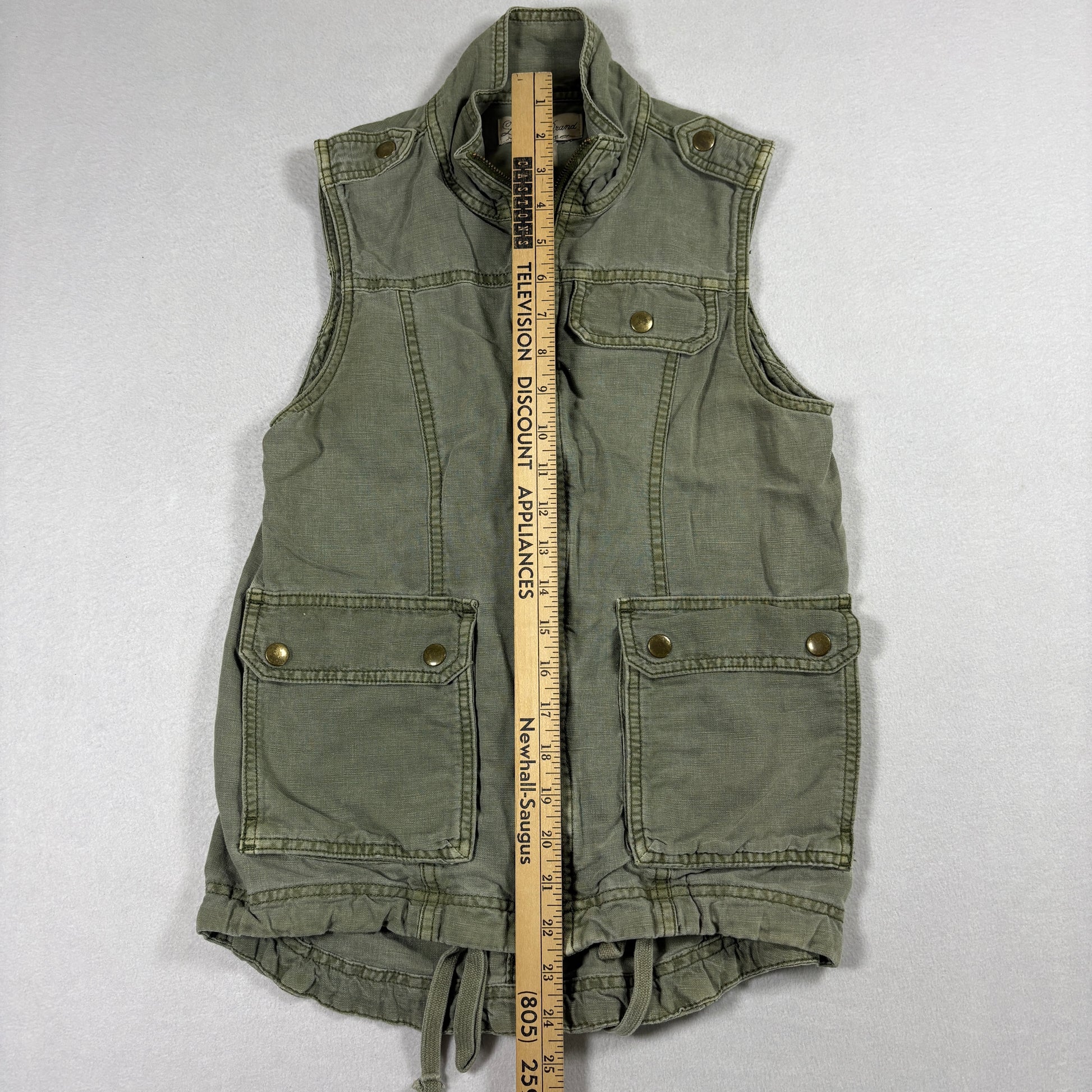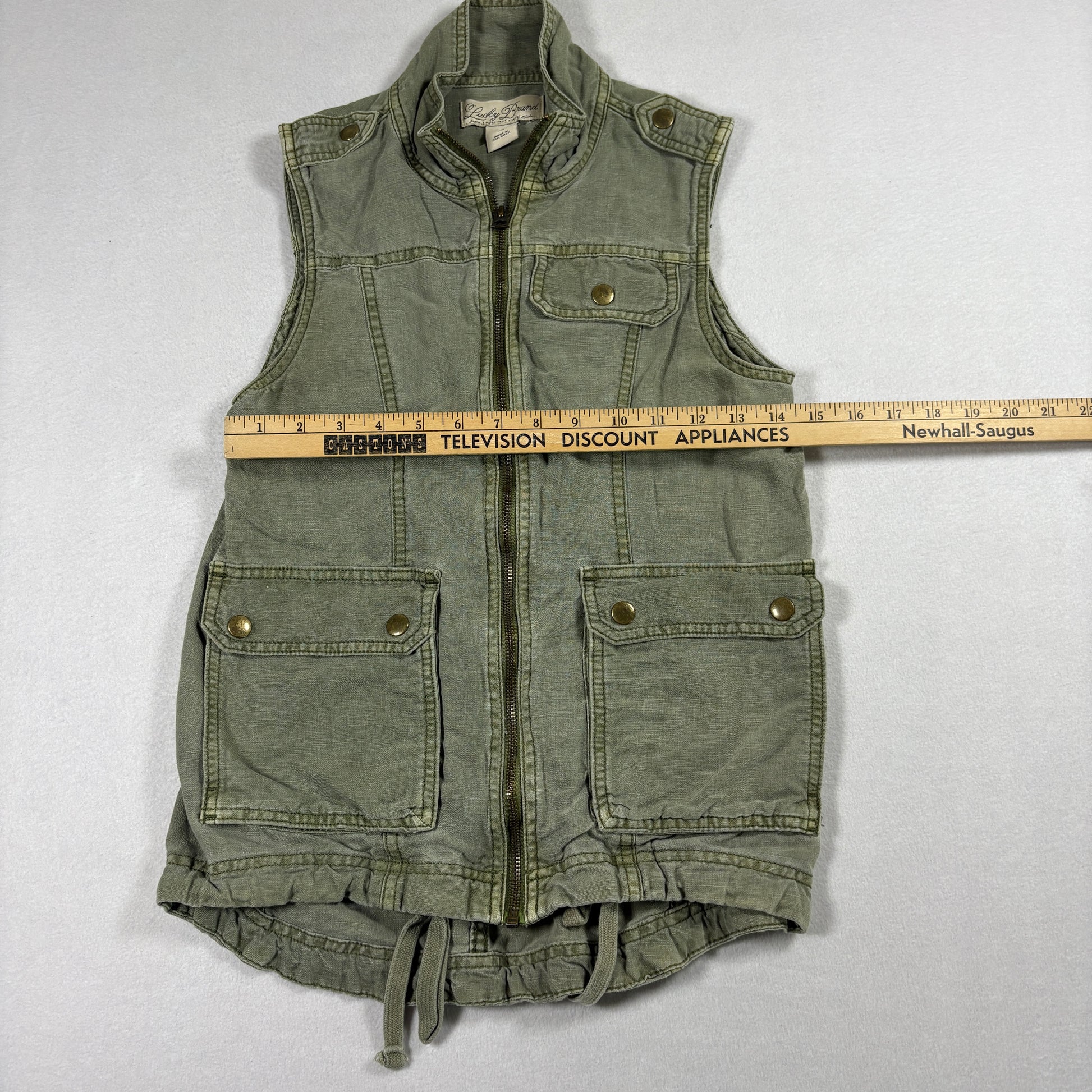 Lucky Brand Womens XS Utility Vest Green Military Cargo Pockets Zip Y2K Grunge