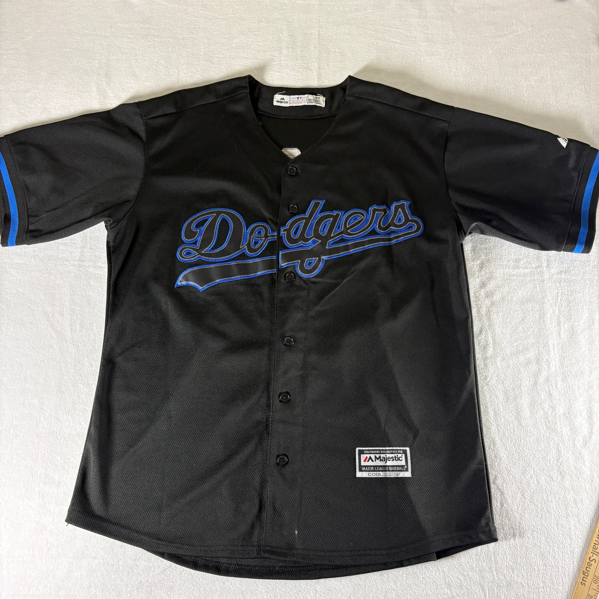 Majestic Dodgers Kershaw 22 Black Jersey Youth L Genuine MLB Cool Base