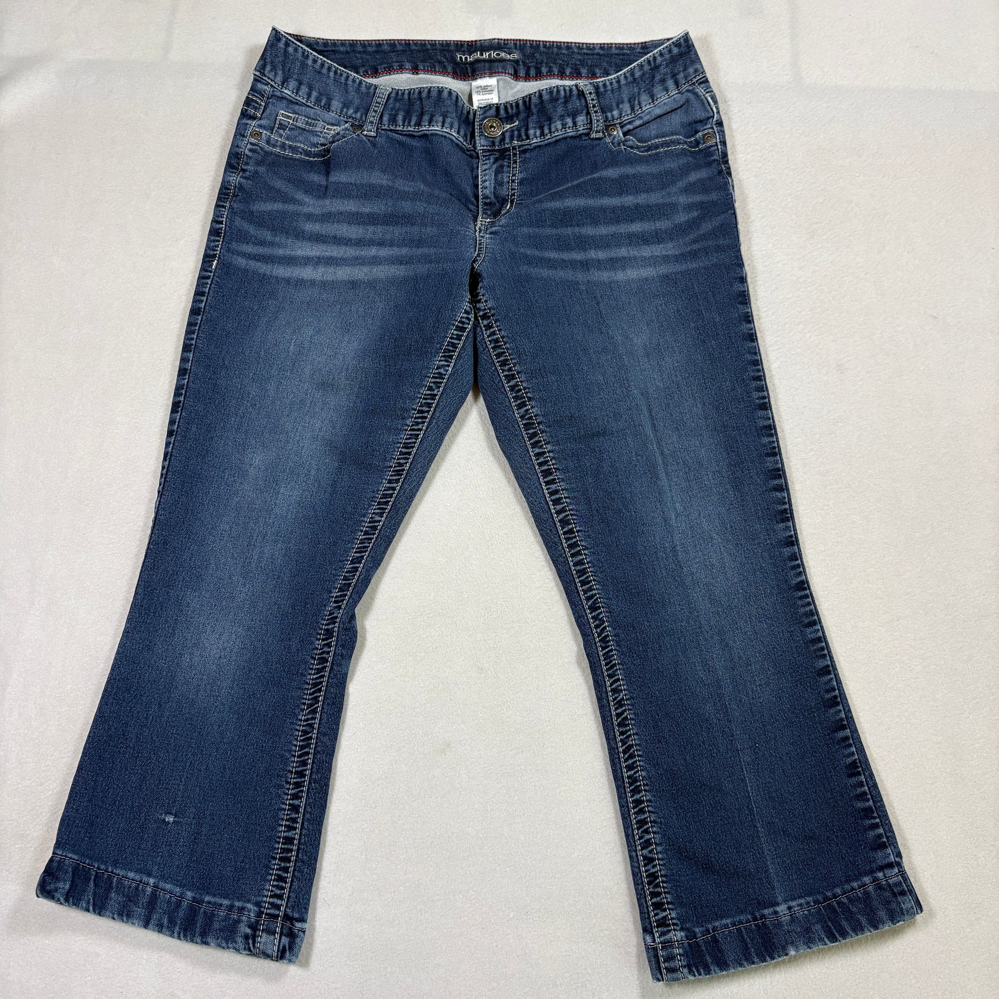 Maurices Womens Jeans L Short Blue Denim Stretch Bootcut Mid Rise Casual Pants