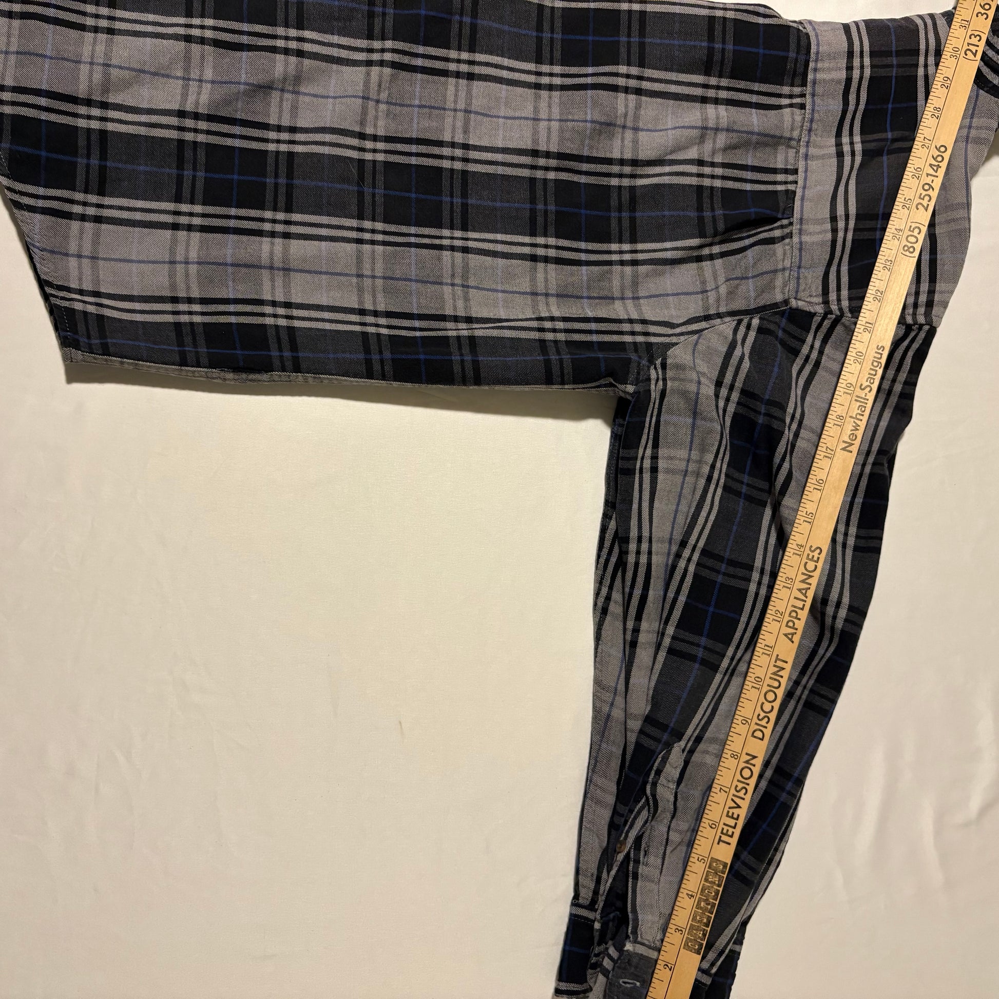 Men’s XL Gray Black Blue Plaid Flannel Button Up Long Sleeve Shirt 100% Cotton Workwear