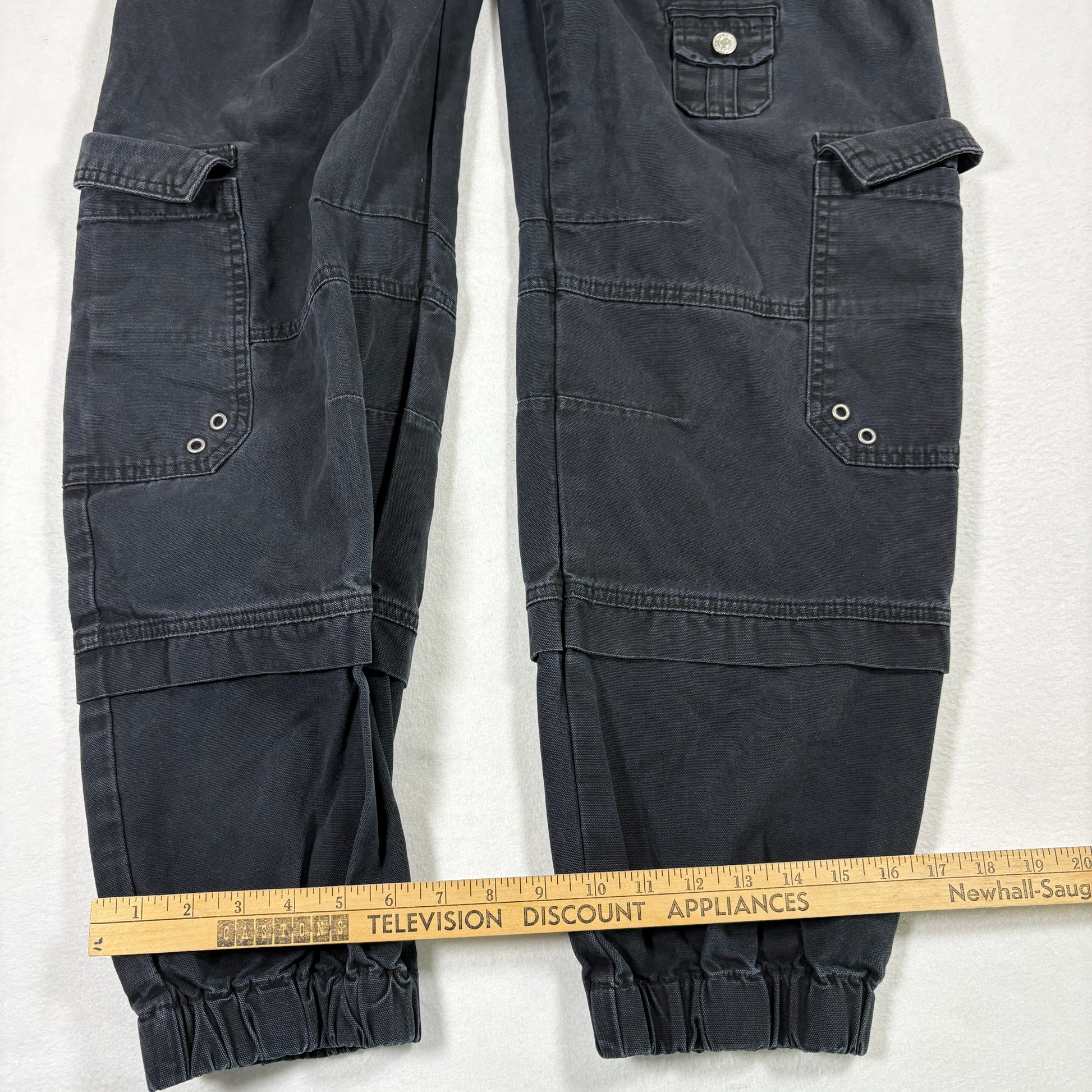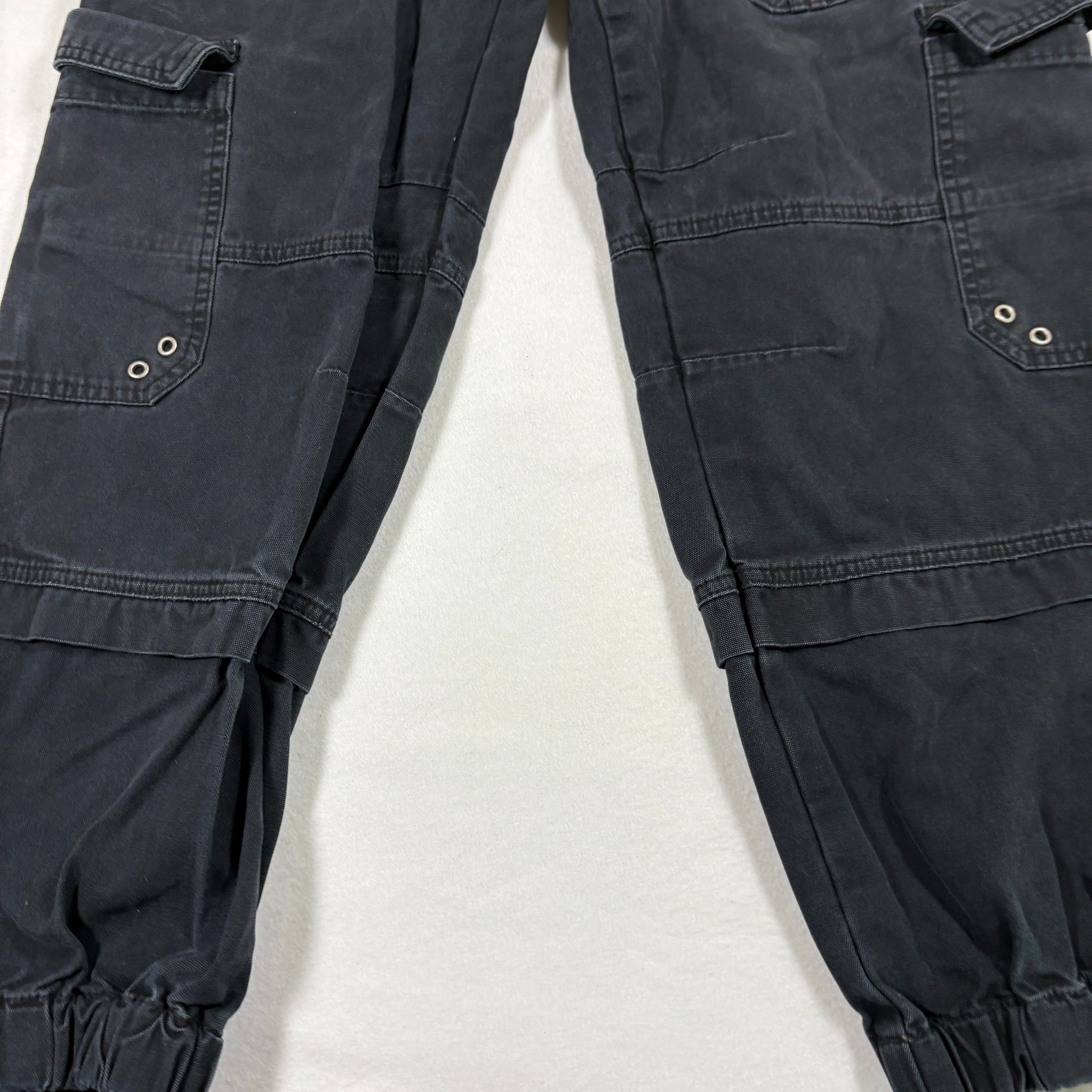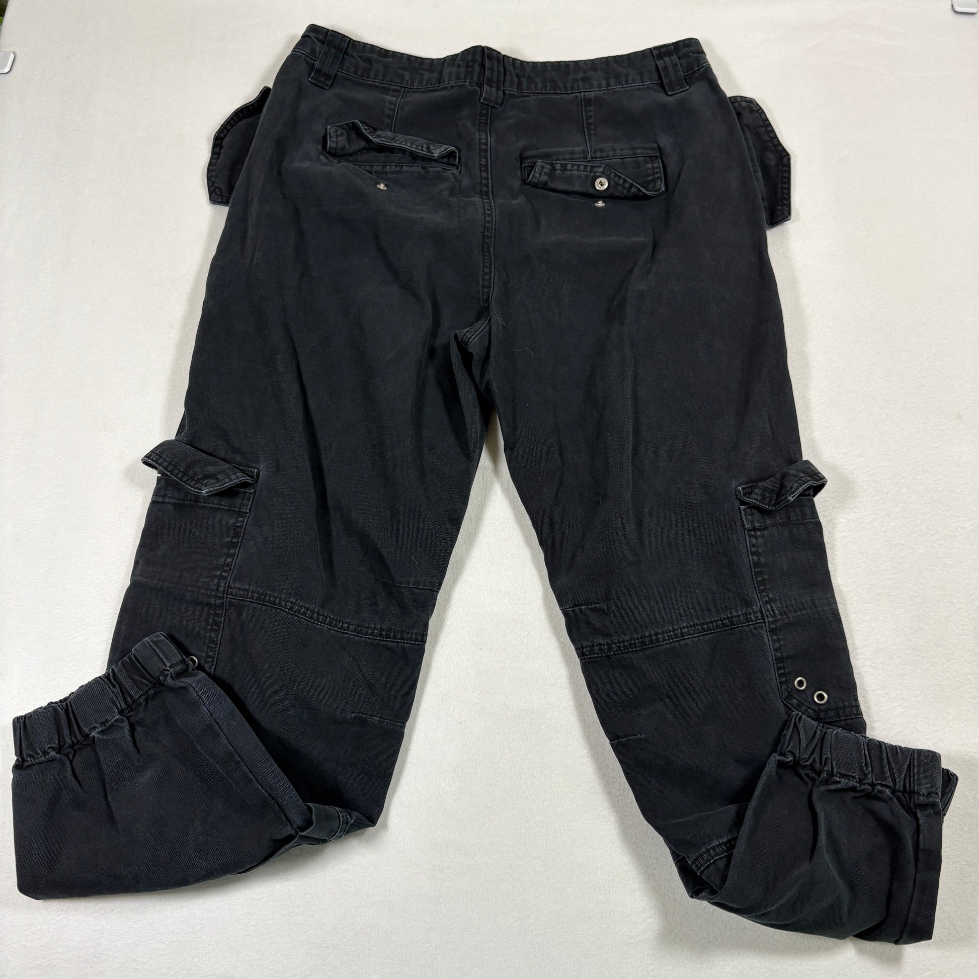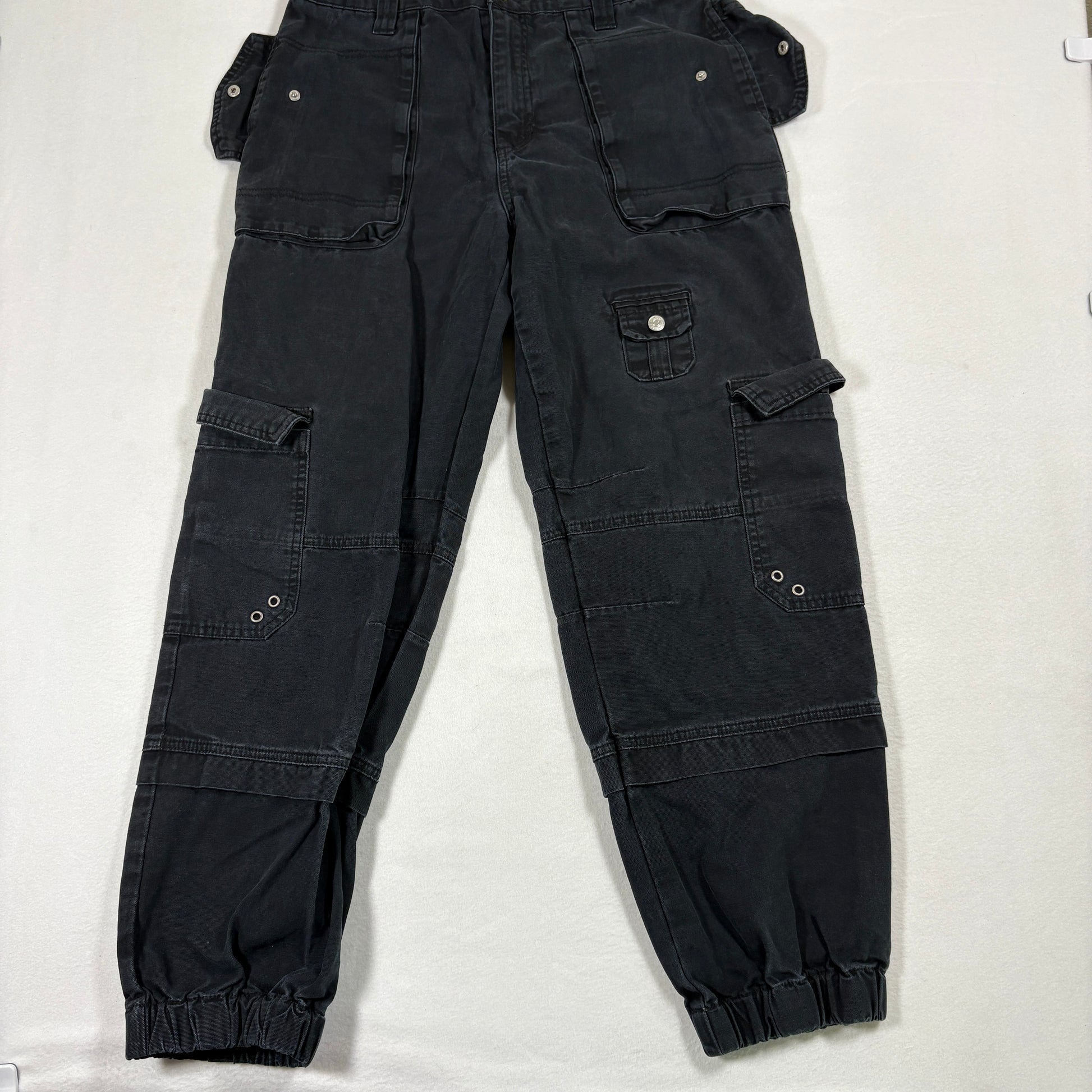 ✓ Details: Multiple flap cargo pockets, metal grommets, elastic cuffs, utility look