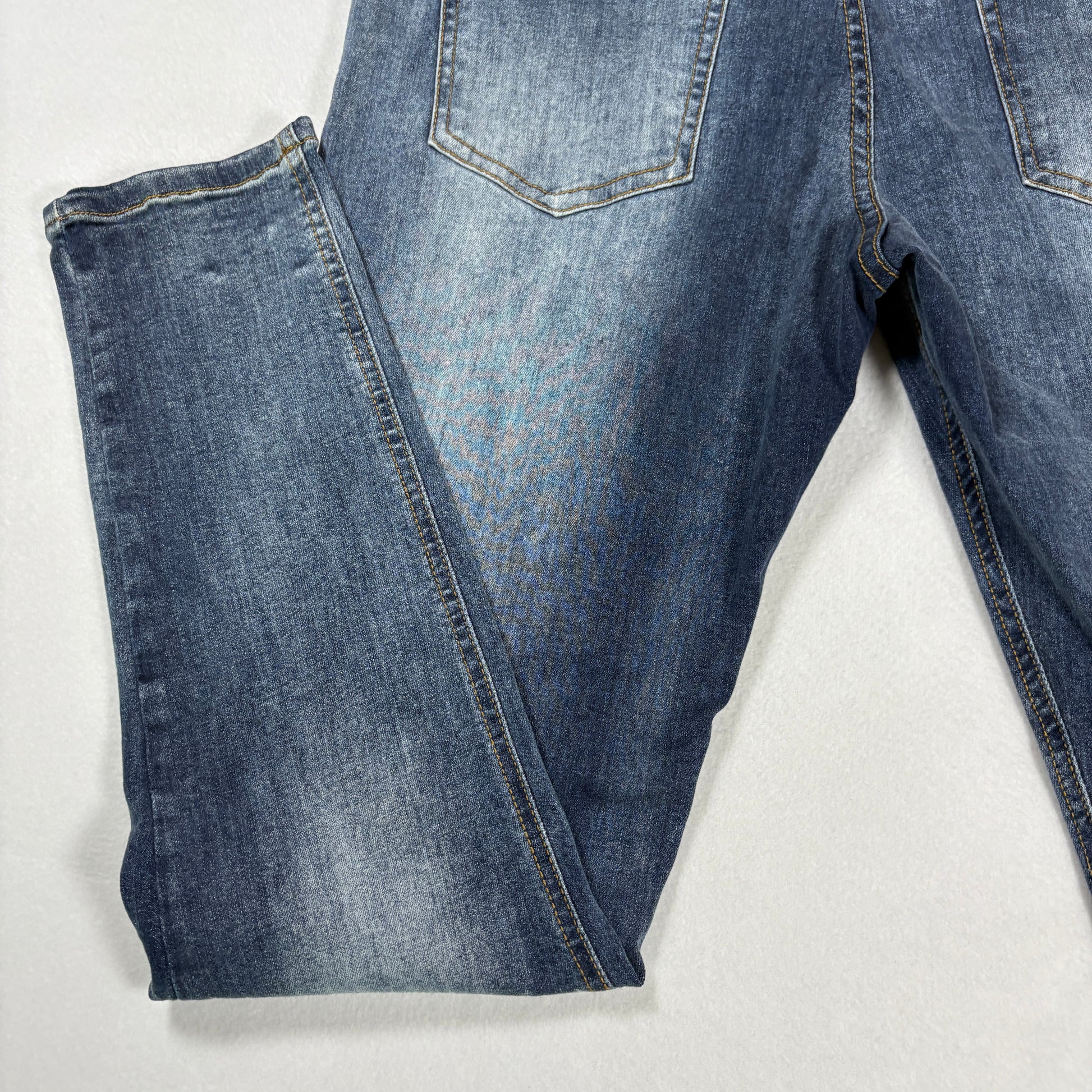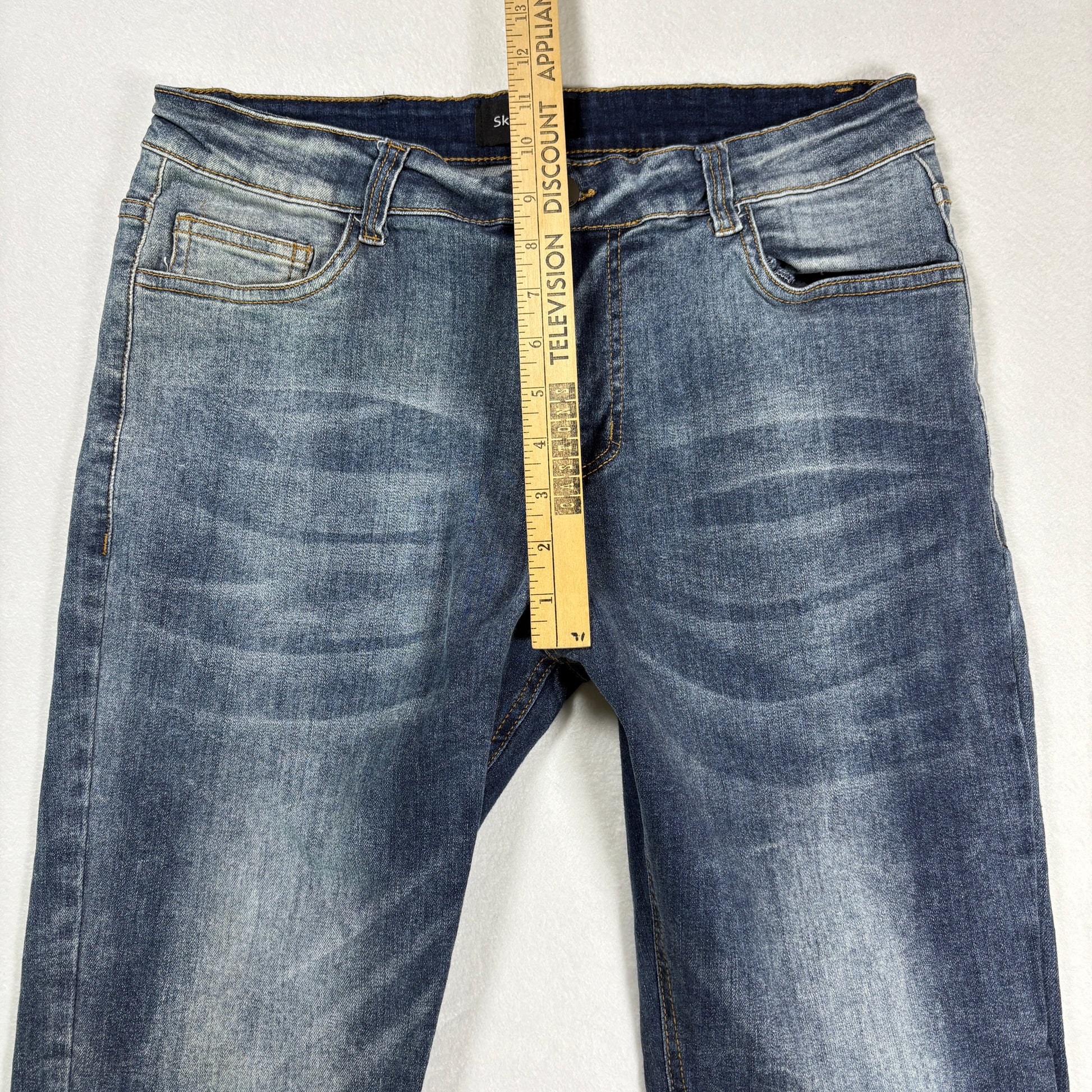 Mens Skinny Fit Jeans 34 Blue Denim Y2K Slim Stretch Distressed Wash Vintage