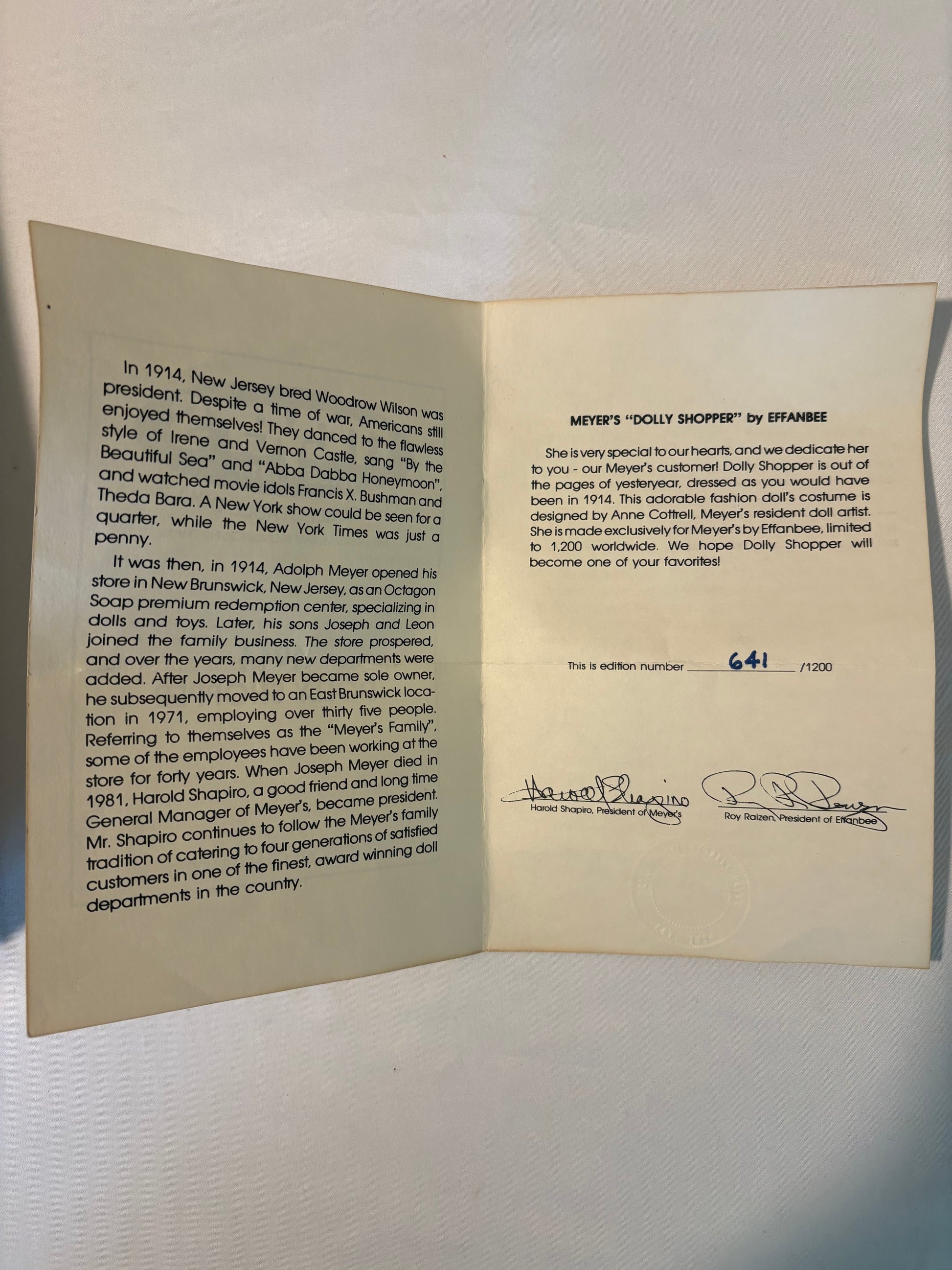 Meyer's 1914 Dolly Shopper by Effanbee – Limited Edition #641/1200 – COA Included