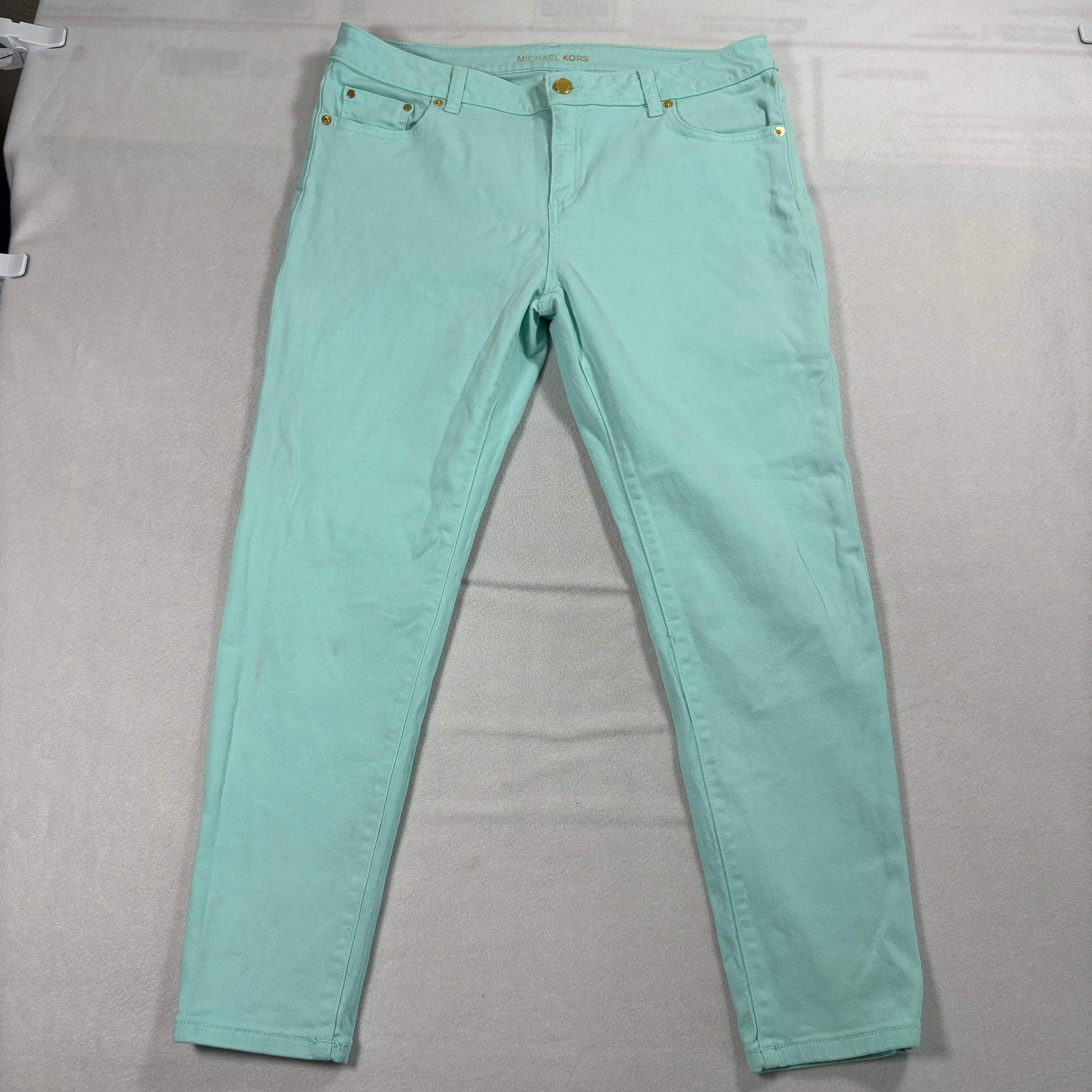 Michael Kors Izzy Cropped Skinny Jeans Womens 12P Aqua Blue Stretch Denim