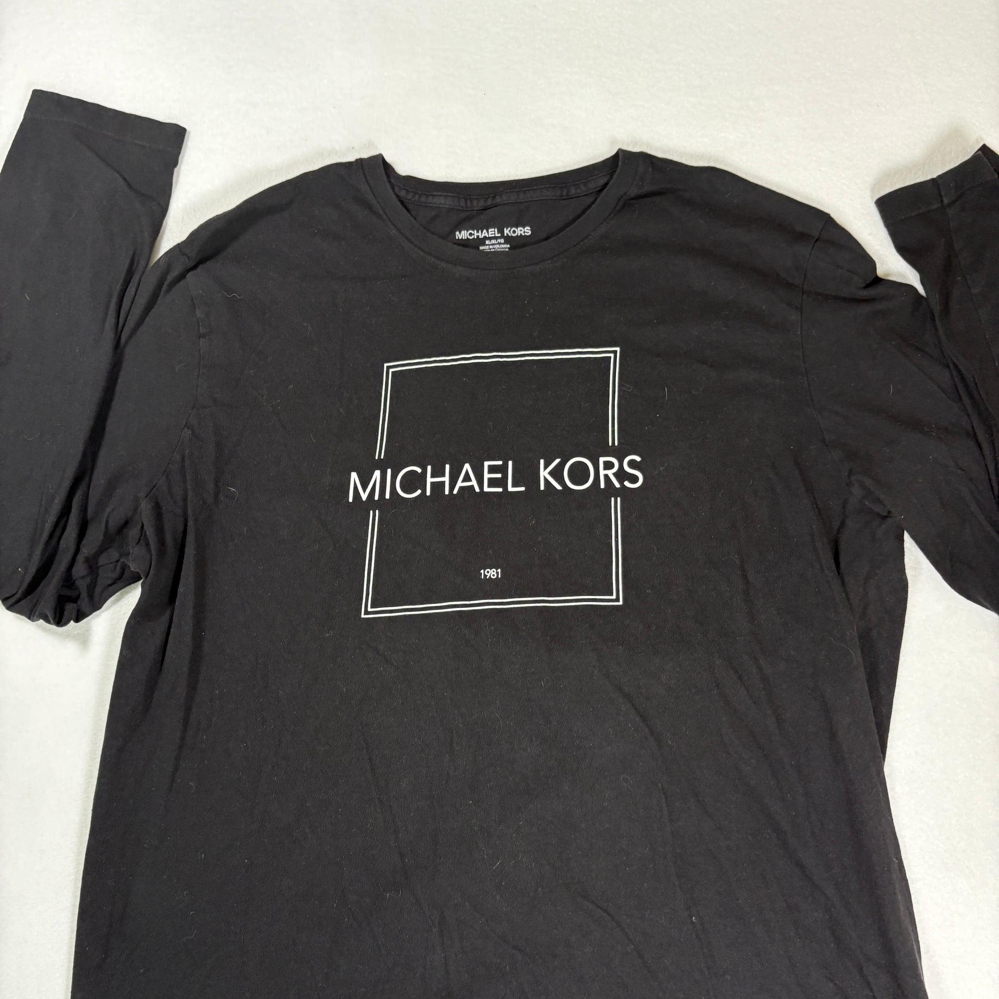 Michael Kors Mens Black Long Sleeve T Shirt XL Logo Graphic Tee Cotton Casual