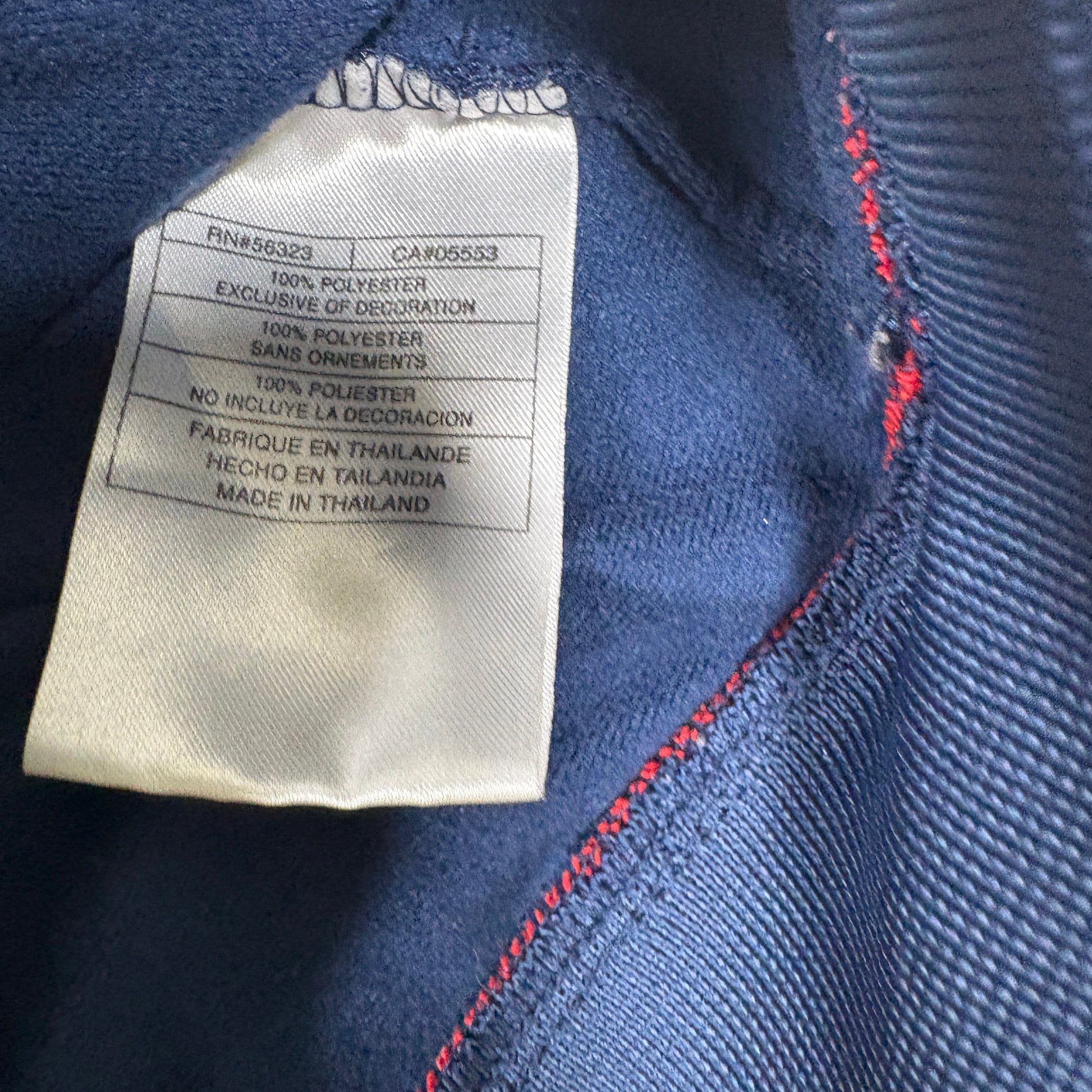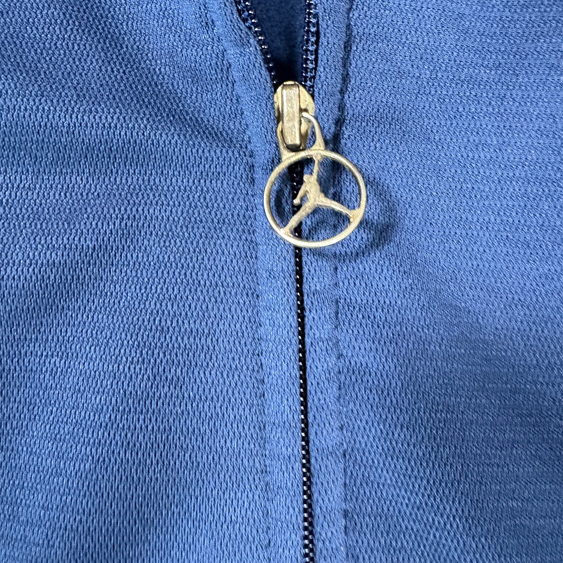 This Air Jordan track jacket is a true retro streetwear staple. With its bold navy and red color blocking, oversized spellout across the back, and iconic Jumpman zipper pull, it brings vintage 90s/Y2K basketball vibes that pair perfectly with sneakers and denim or joggers. A standout piece for collectors and streetwear fans alike.