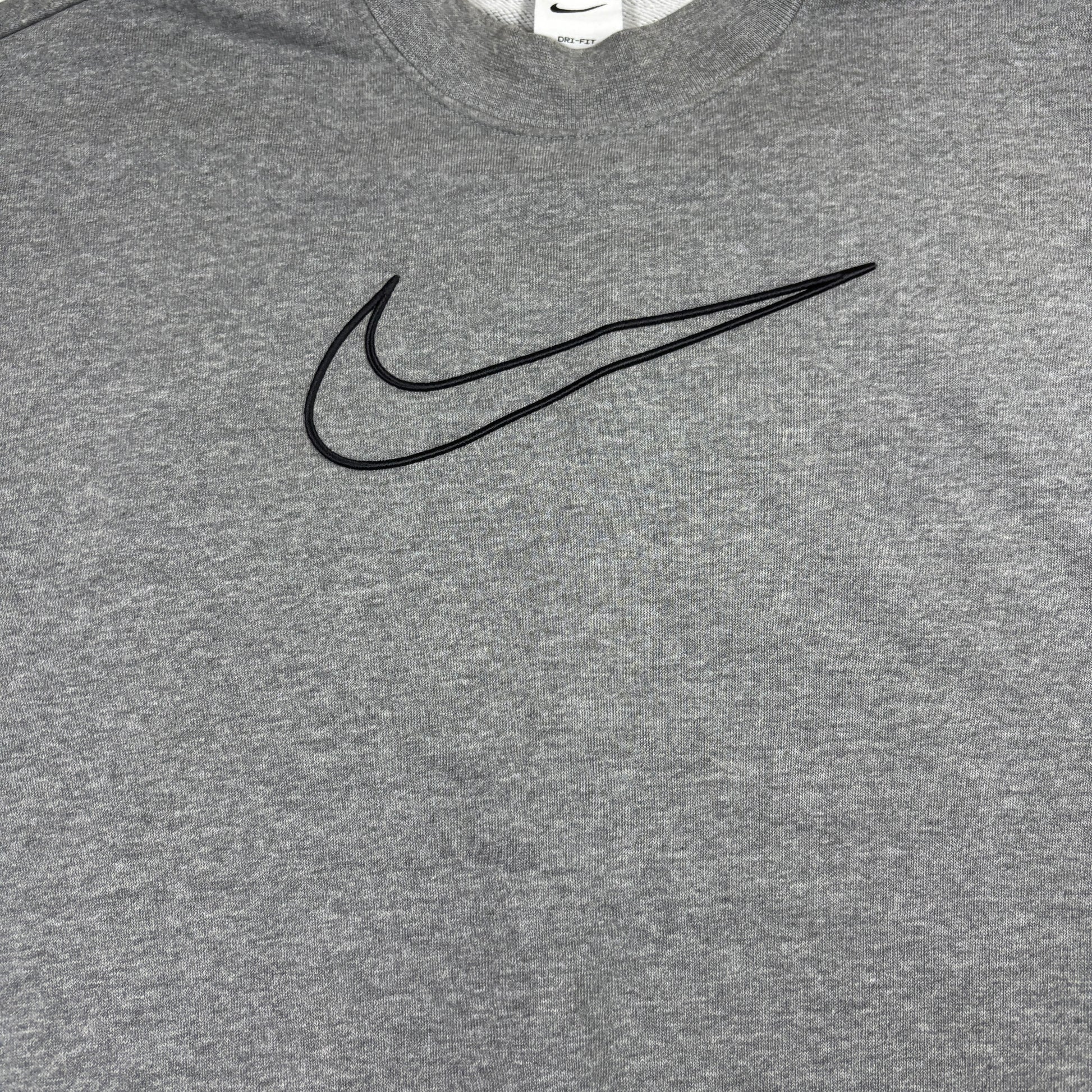 This Nike sweatshirt combines classic athletic styling with Y2K streetwear appeal. The bold swoosh logo across the chest gives it a vintage-inspired edge, while the Dri-Fit fabric keeps it lightweight and comfortable for workouts or casual wear.