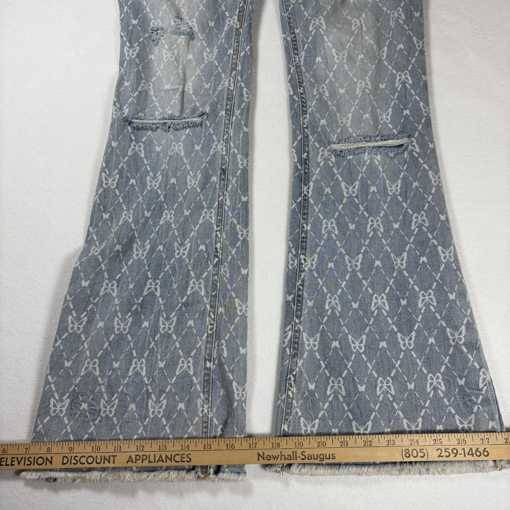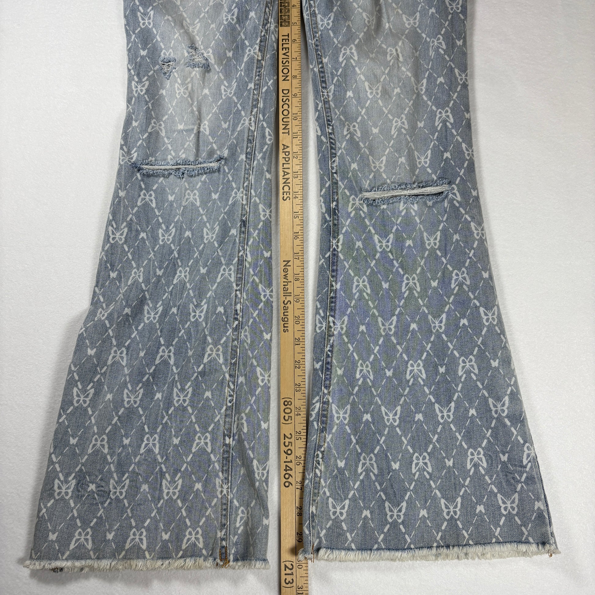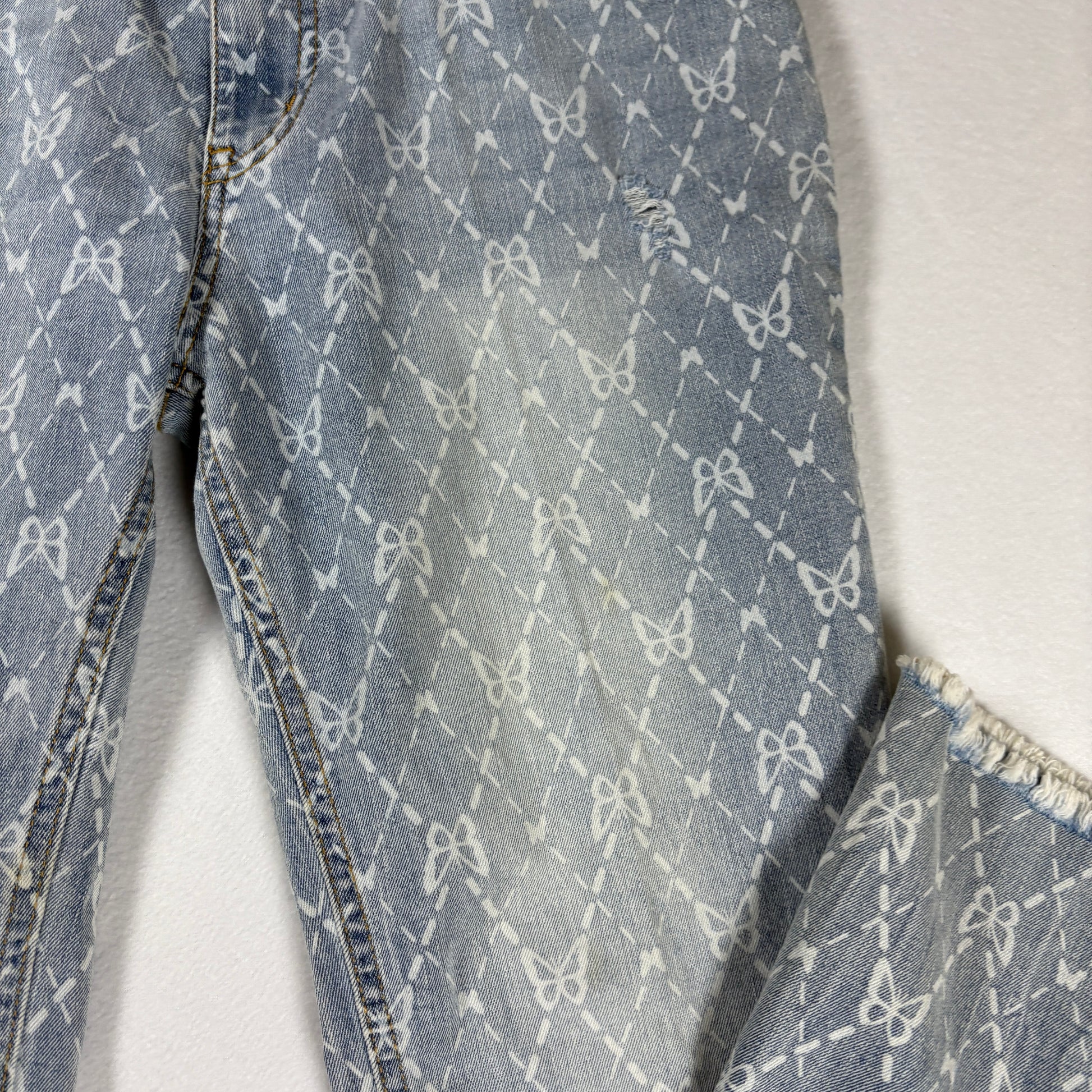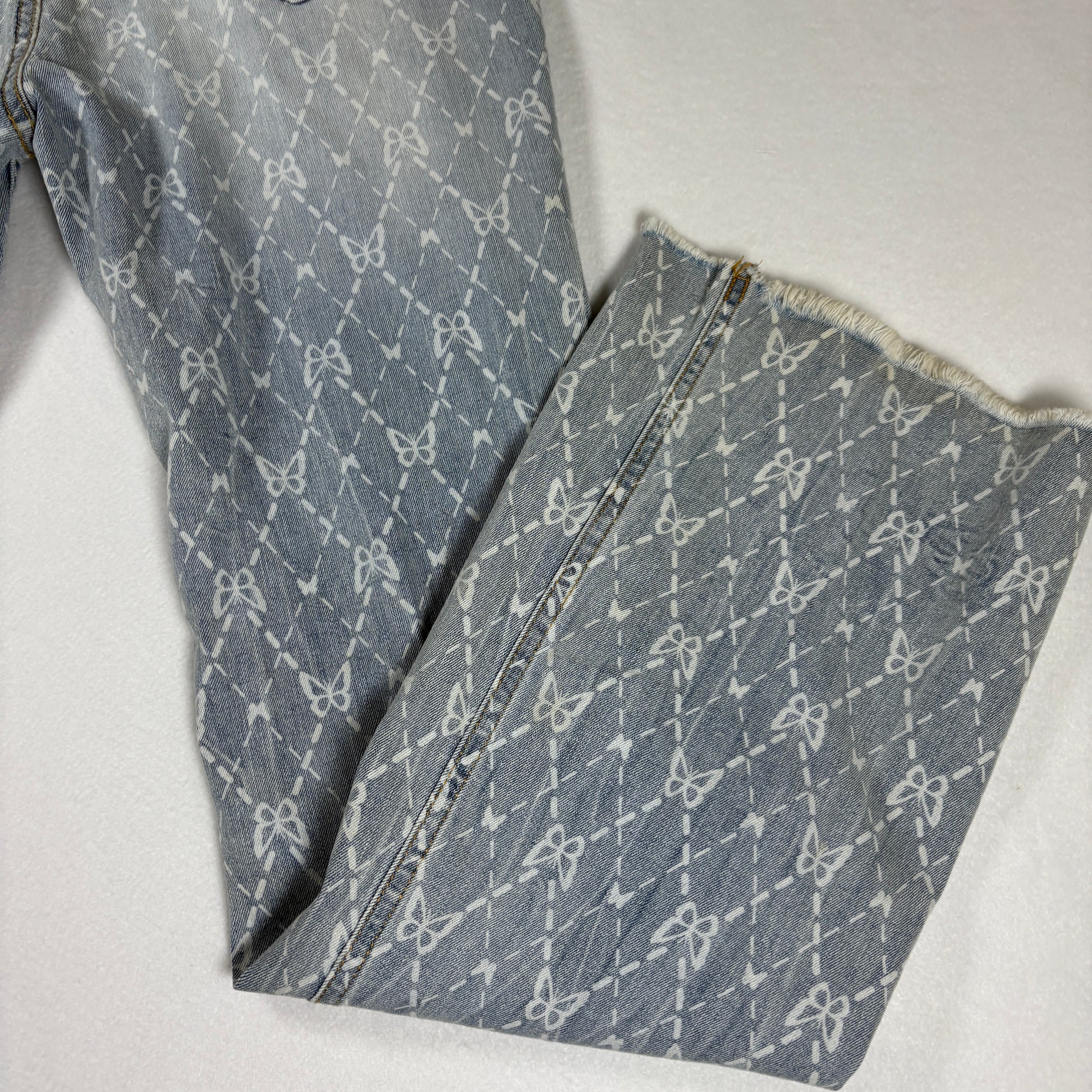 No Boundaries Jeans Womens 11 Blue Print Distressed Flare Leg Boho Y2K Denim