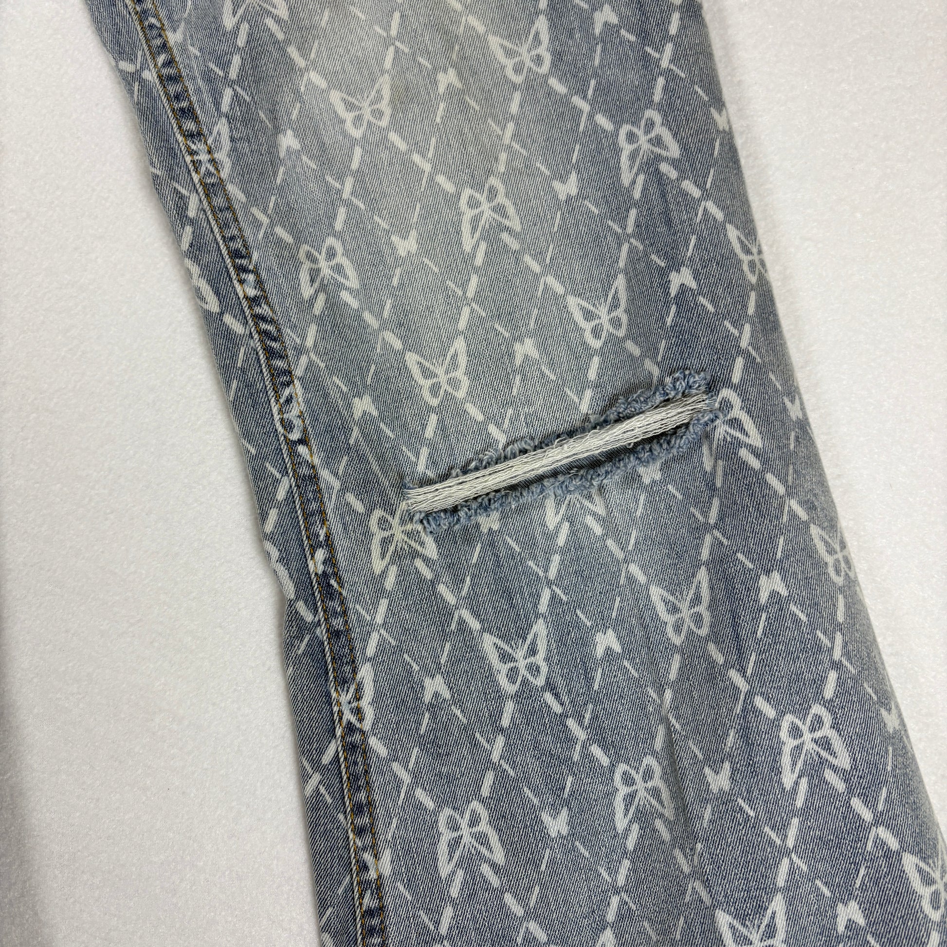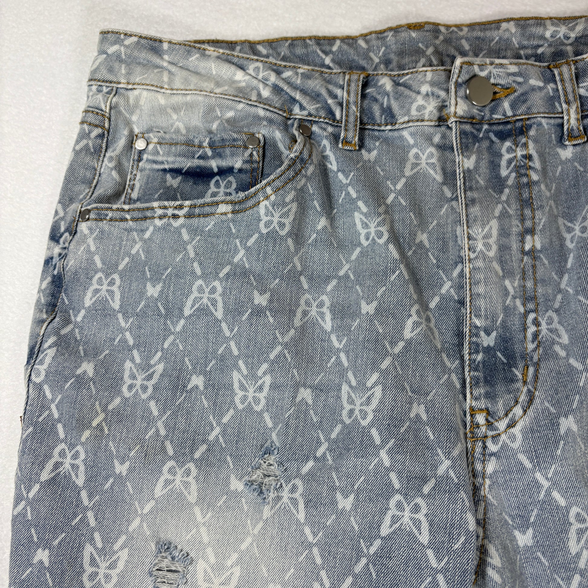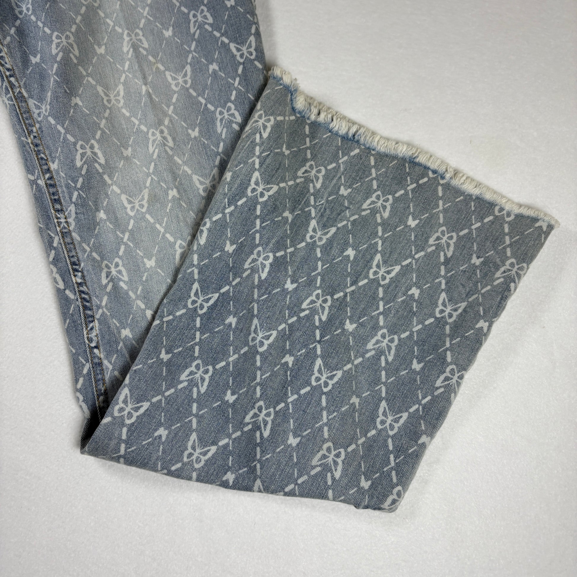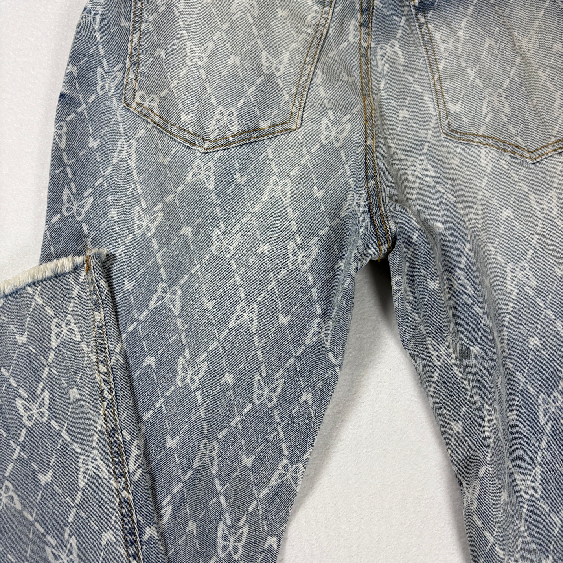 No Boundaries Jeans Womens 11 Blue Print Distressed Flare Leg Boho Y2K Denim