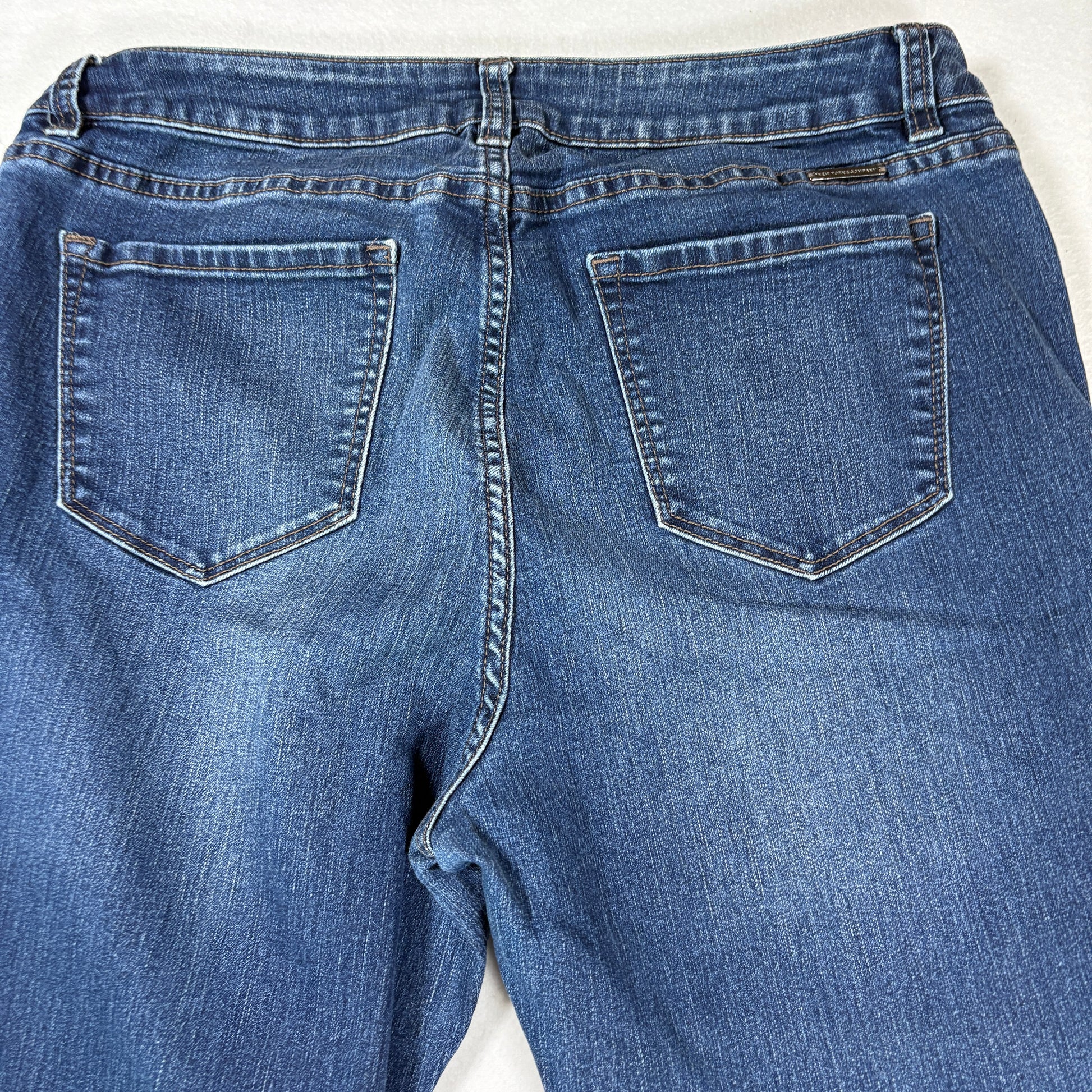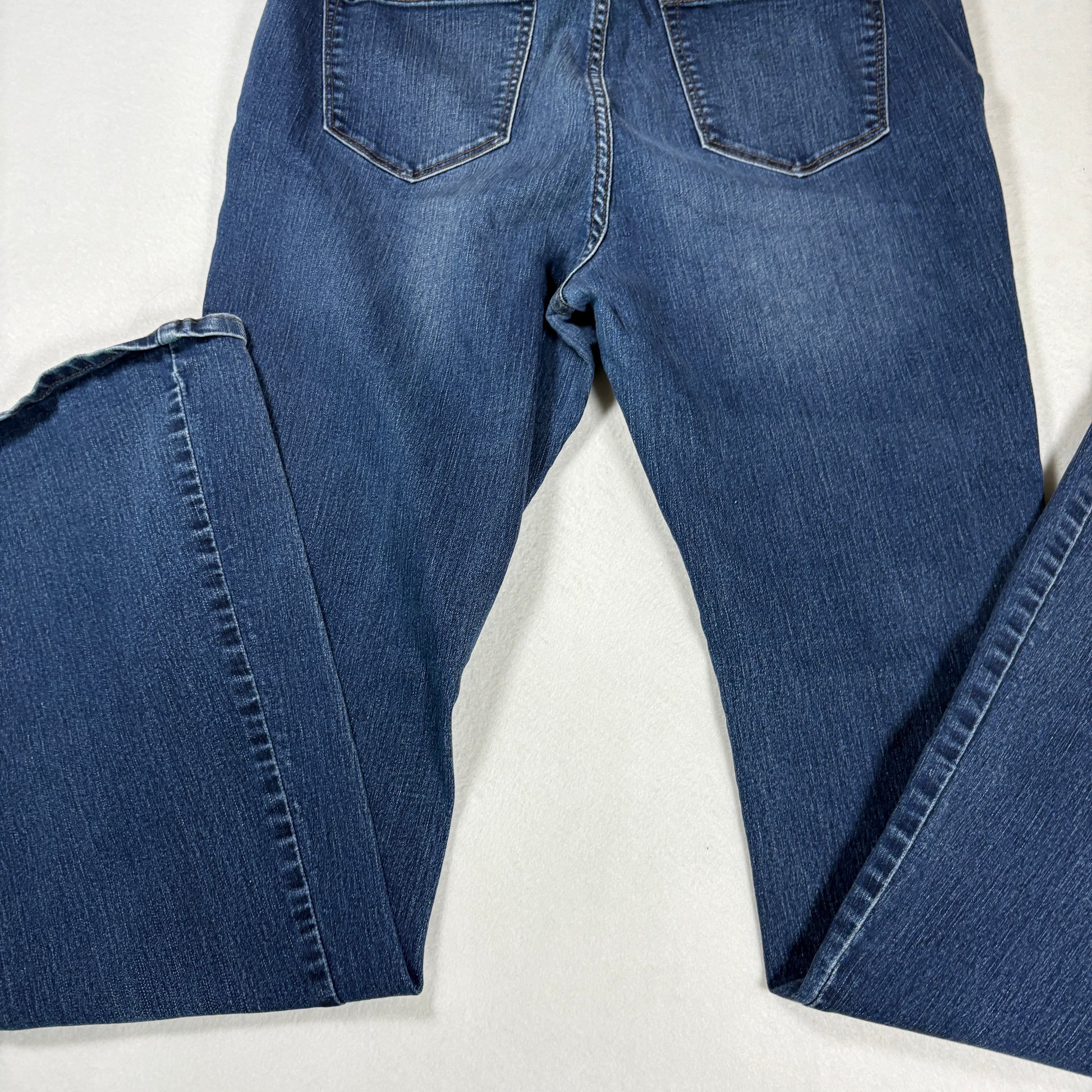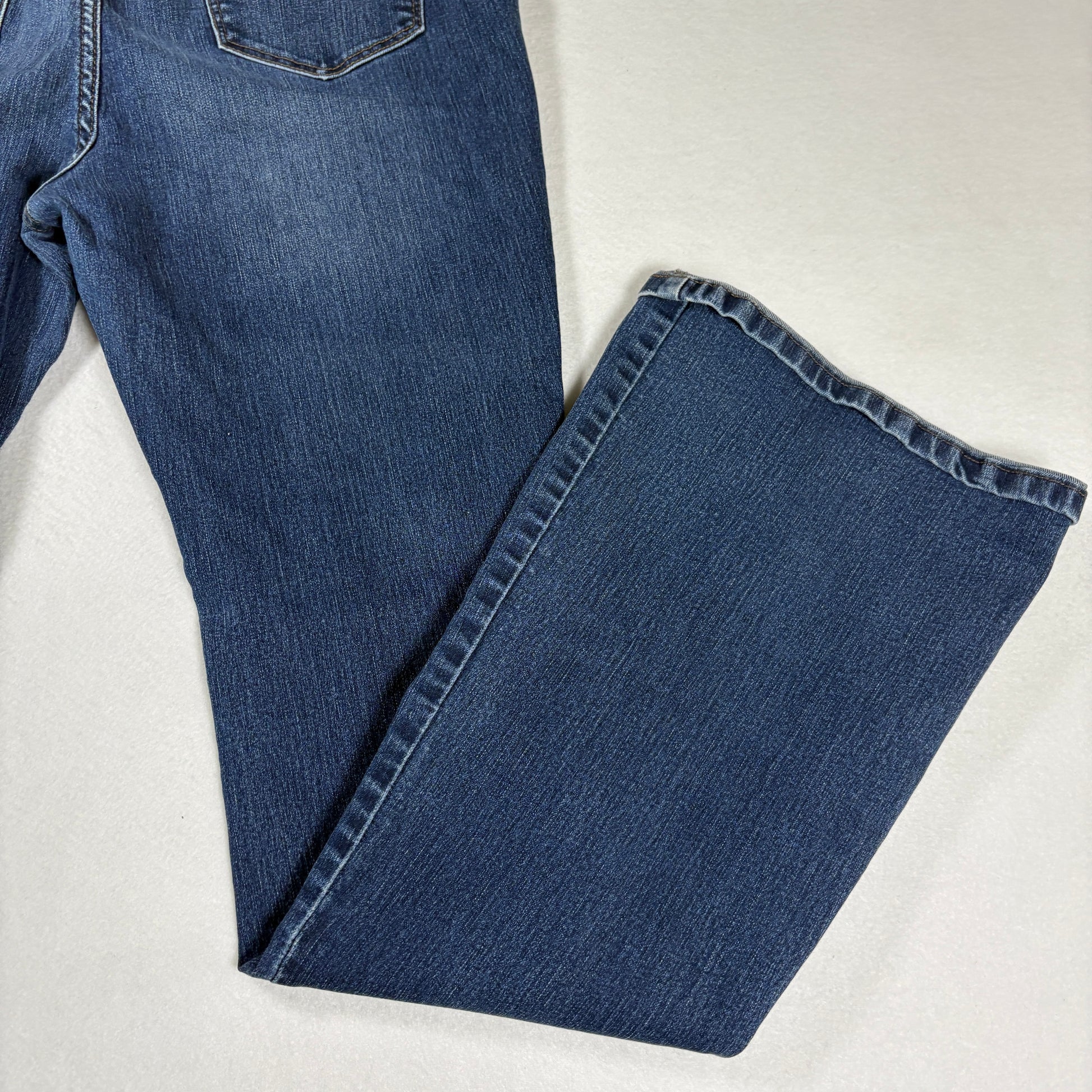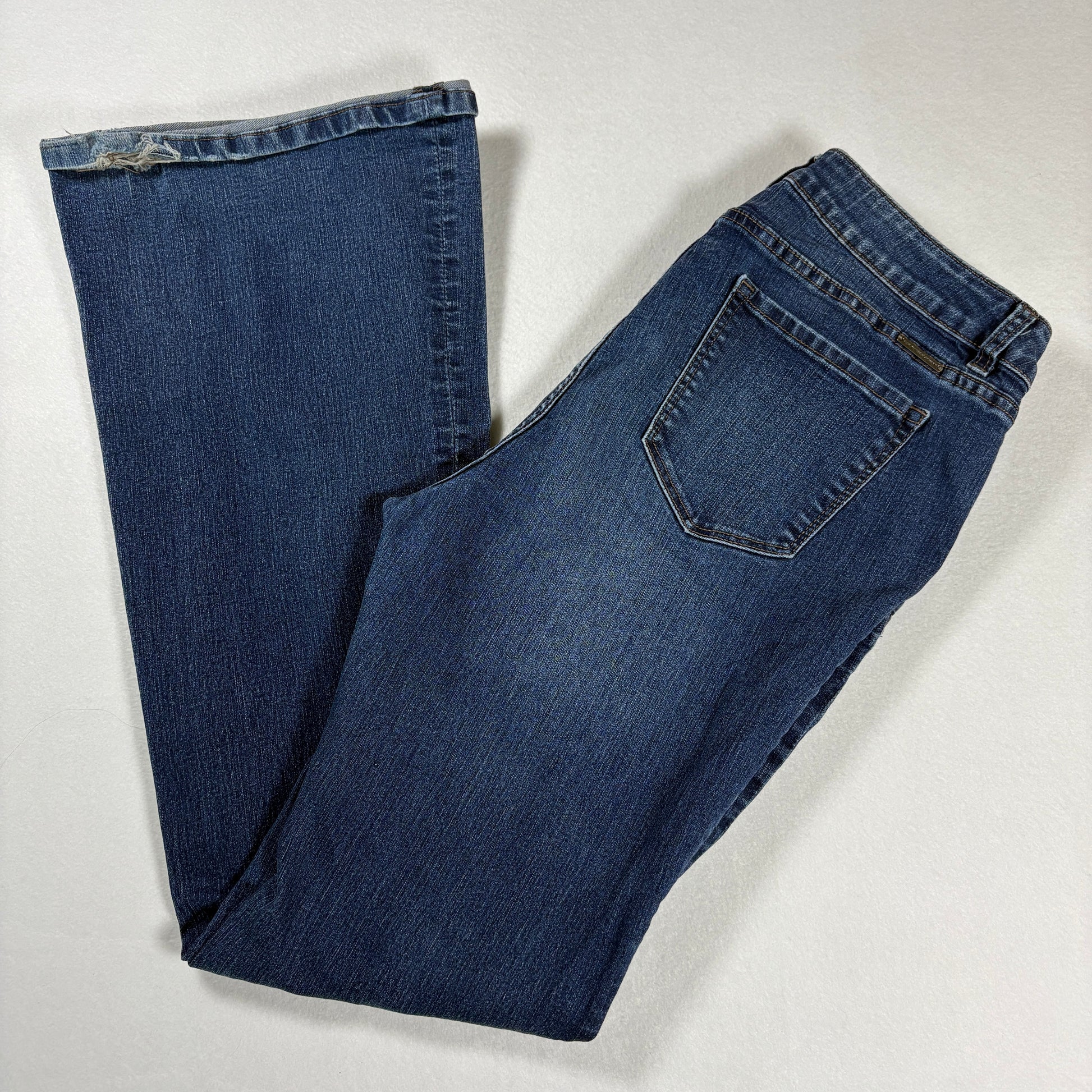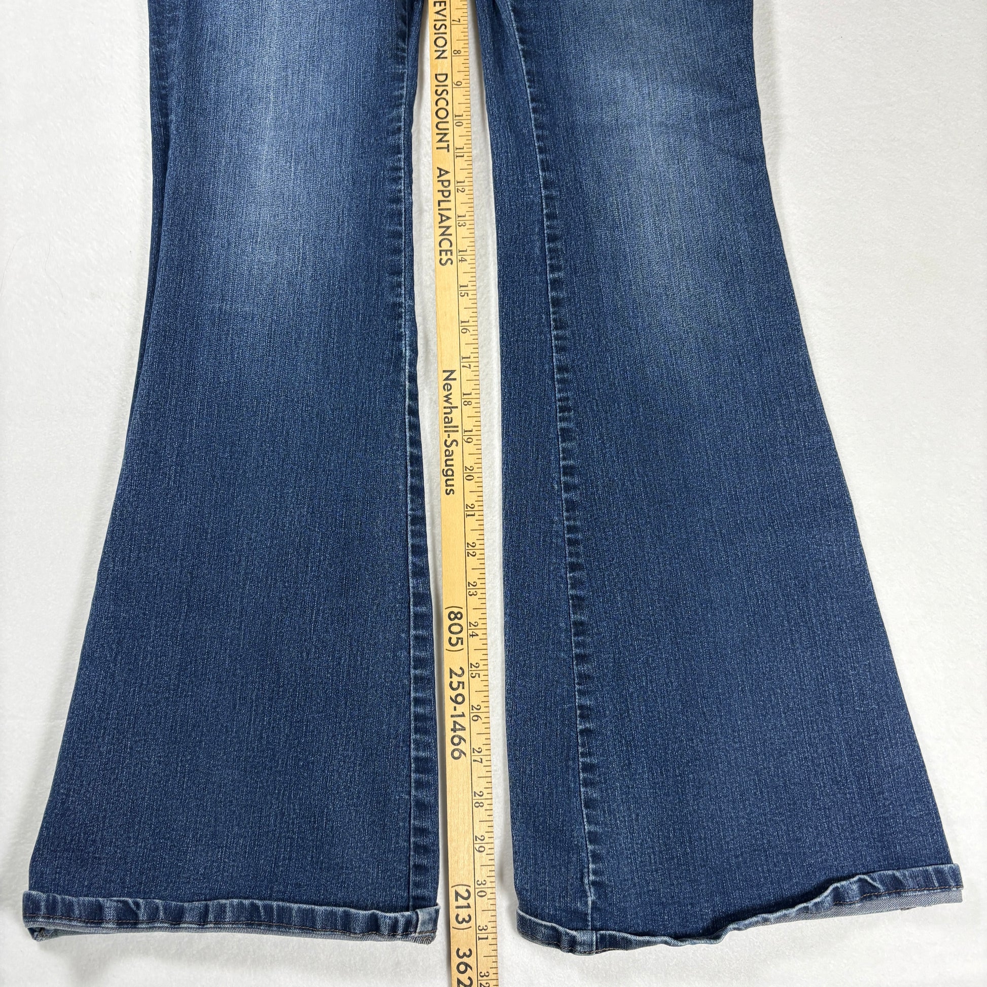 NY&C Soho Womens Jeans Sz 12 High Rise Flare Blue Denim Y2K Distressed Hem