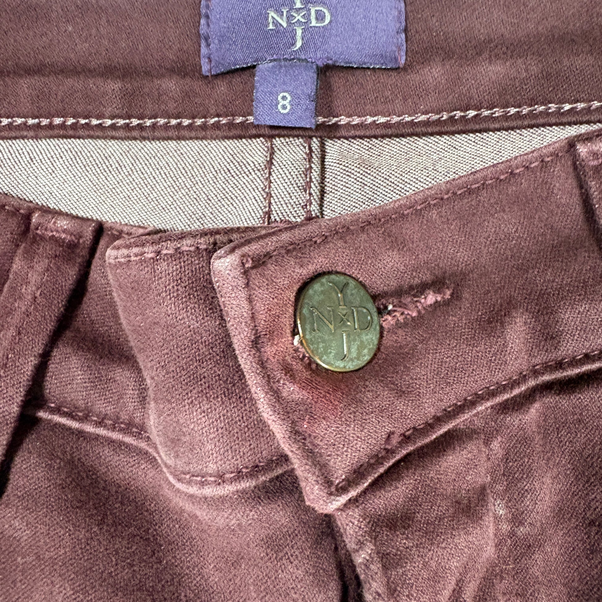 NYDJ, womens burgundy jeans, Alina legging jeggings, Lift Tuck Technology, slim stretch pants, wine red jeggings, size 8 jeans