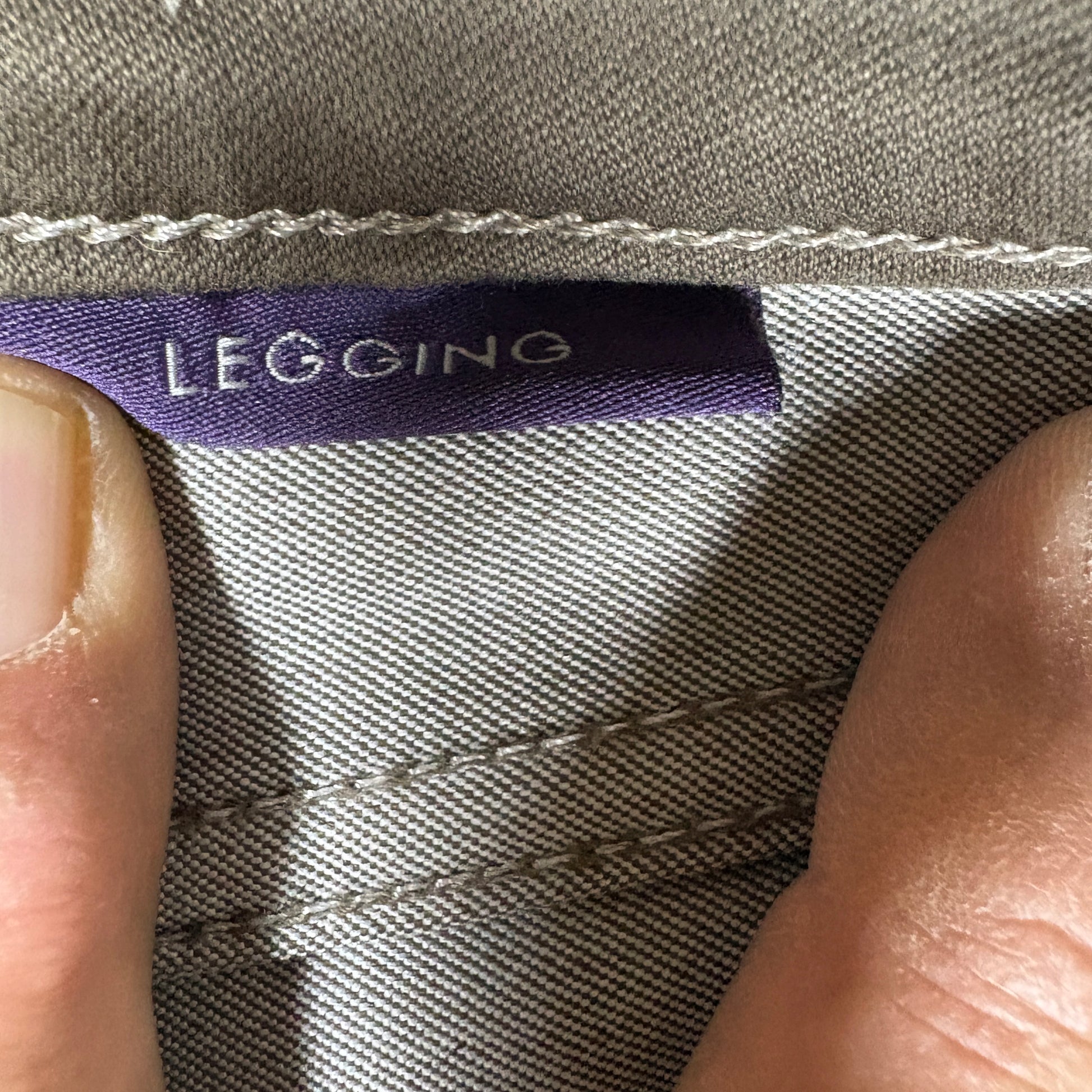 These NYDJ women’s brown legging jeans in size 10 combine flattering Ab Slimming Technology with a sleek skinny silhouette. The stretch denim hugs curves for a comfortable yet polished look that works for both casual and dressy outfits. A neutral color makes them versatile and easy to style, while the legging cut channels modern Y2K and curvy fit appeal.