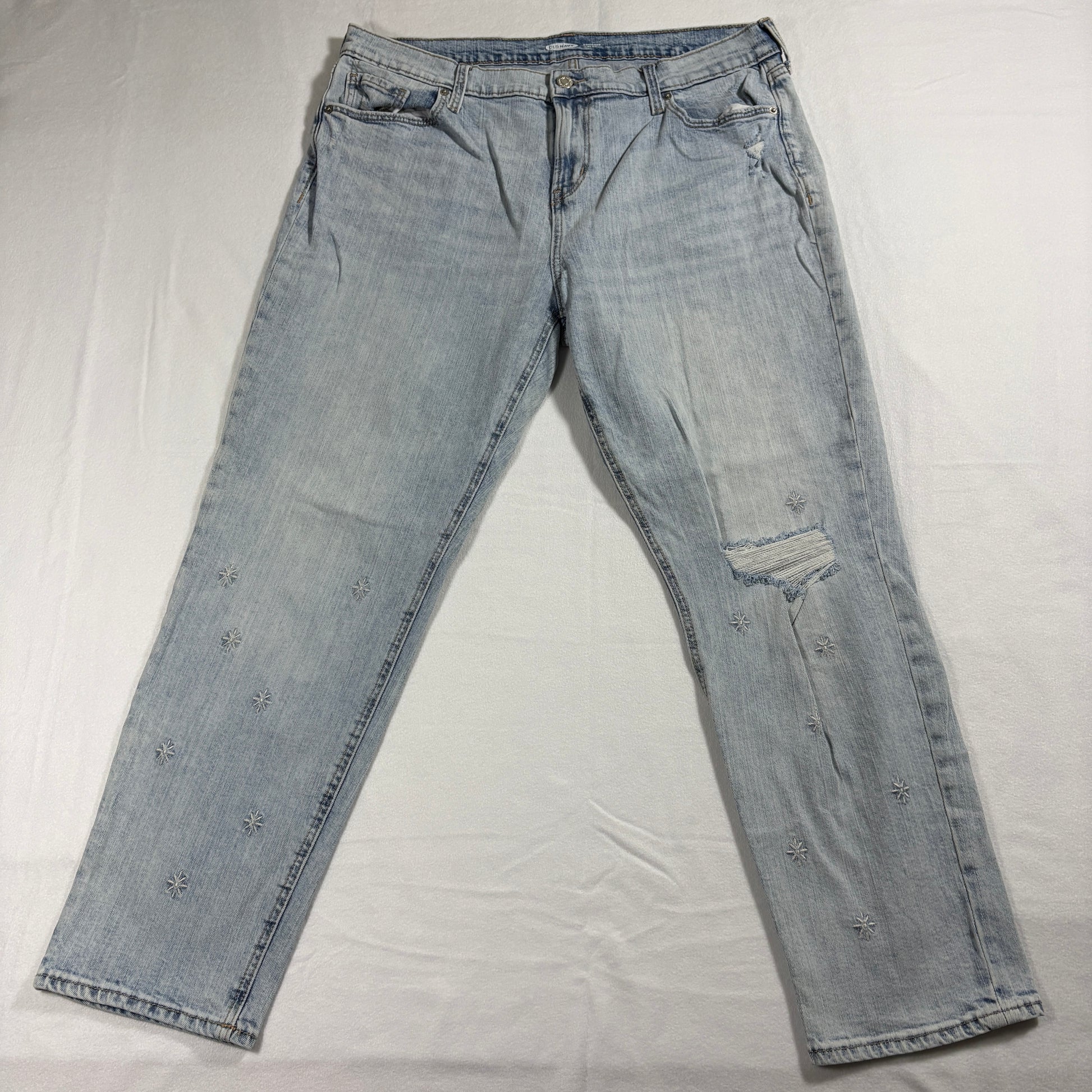 Old Navy Jeans Womens Light Wash Distressed Embroidered Boyfriend Y2K 16W-18W