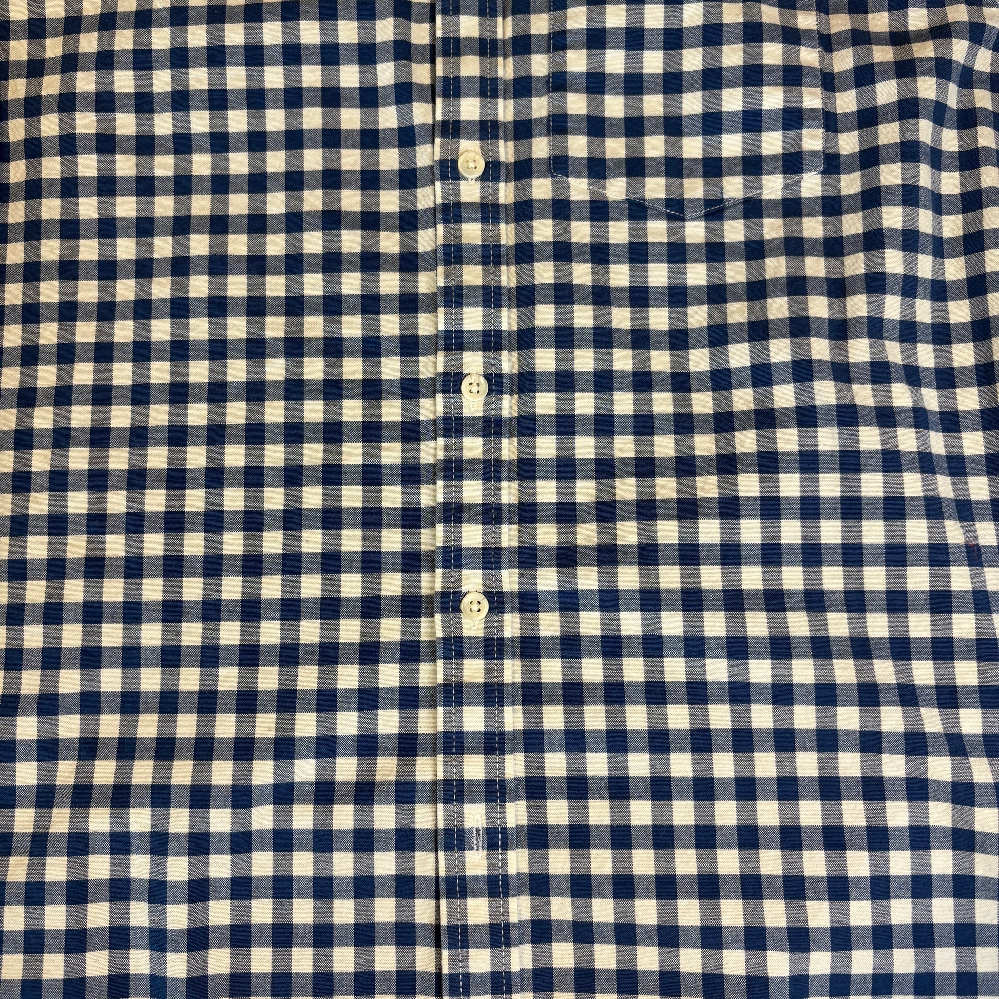 Old Navy men’s shirt, large Oxford shirt, gingham check button-down, blue white slim fit shirt, stretch cotton shirt, men’s casual dress shirt, Old Navy slim fit Oxford, button down gingham shirt, large size men’s shirt, classic Oxford button-up