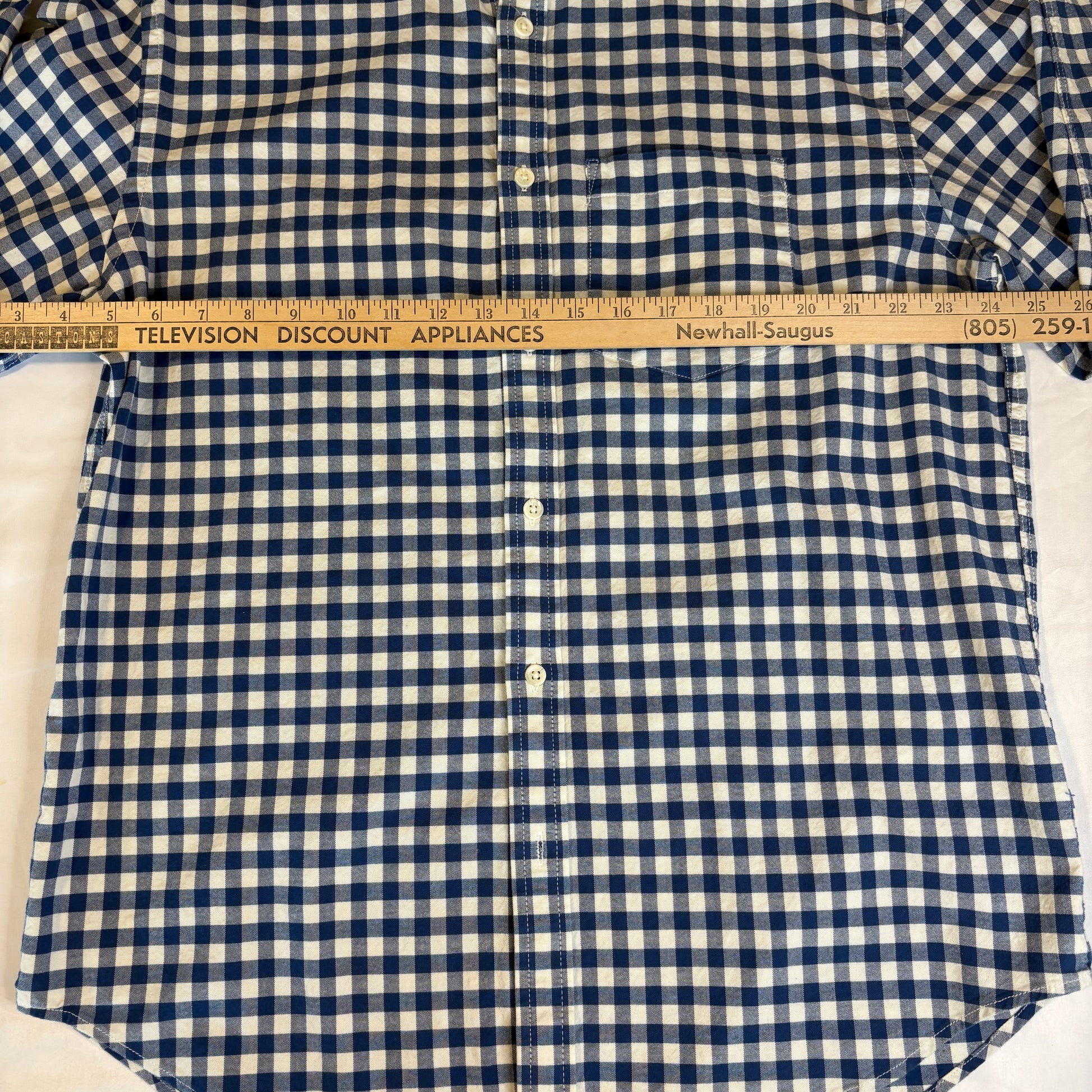 Old Navy Men’s Oxford Shirt Large Blue White Gingham Check Slim Fit Stretch