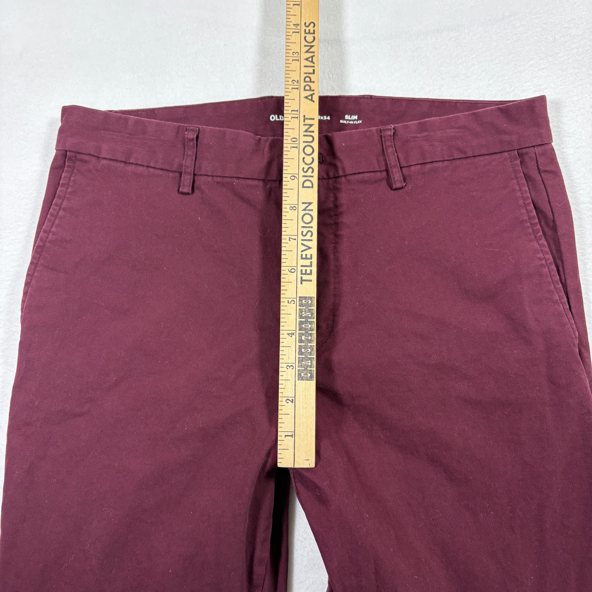 Old Navy mens pants size 32x34 burgundy slim fit stretch chinos Y2K casual
