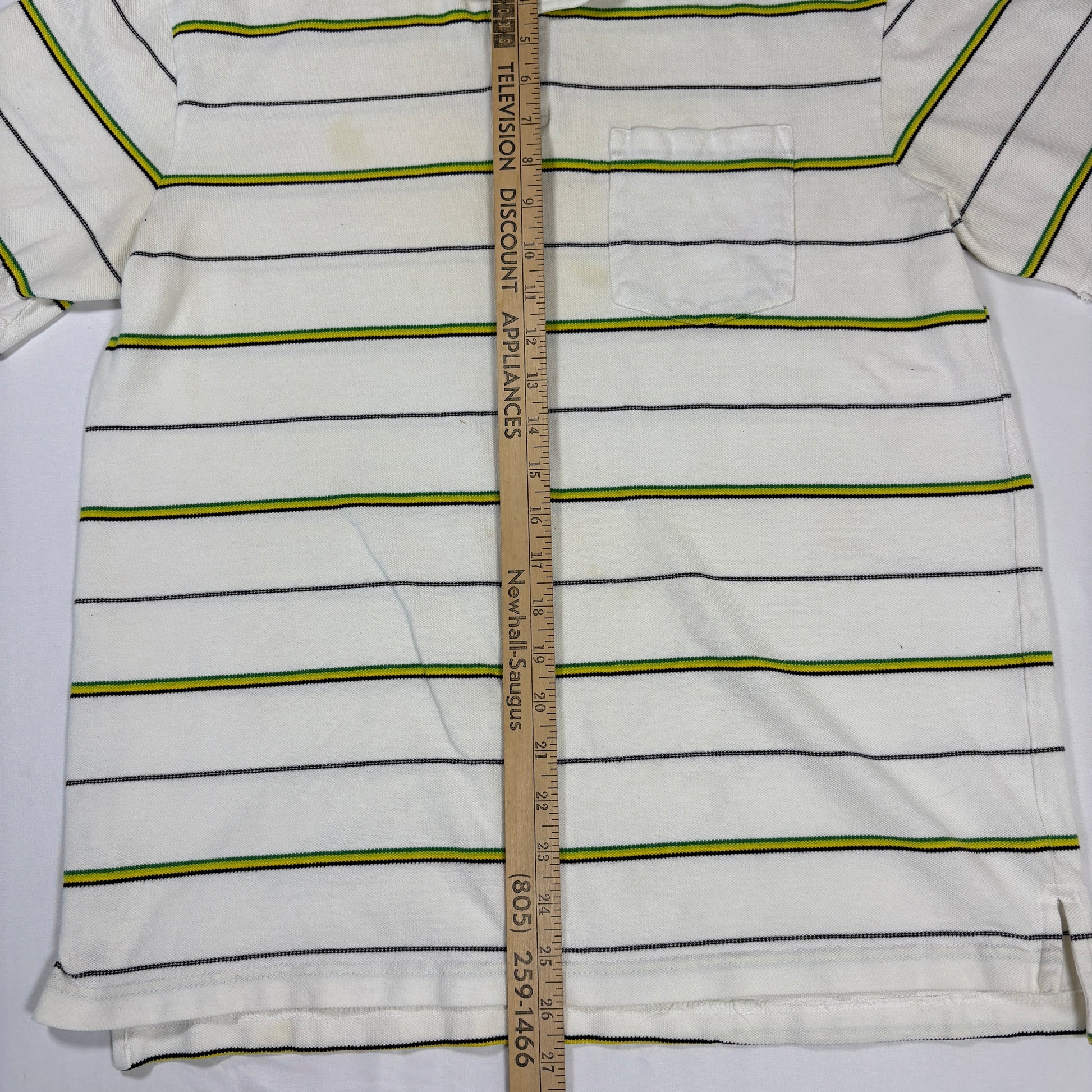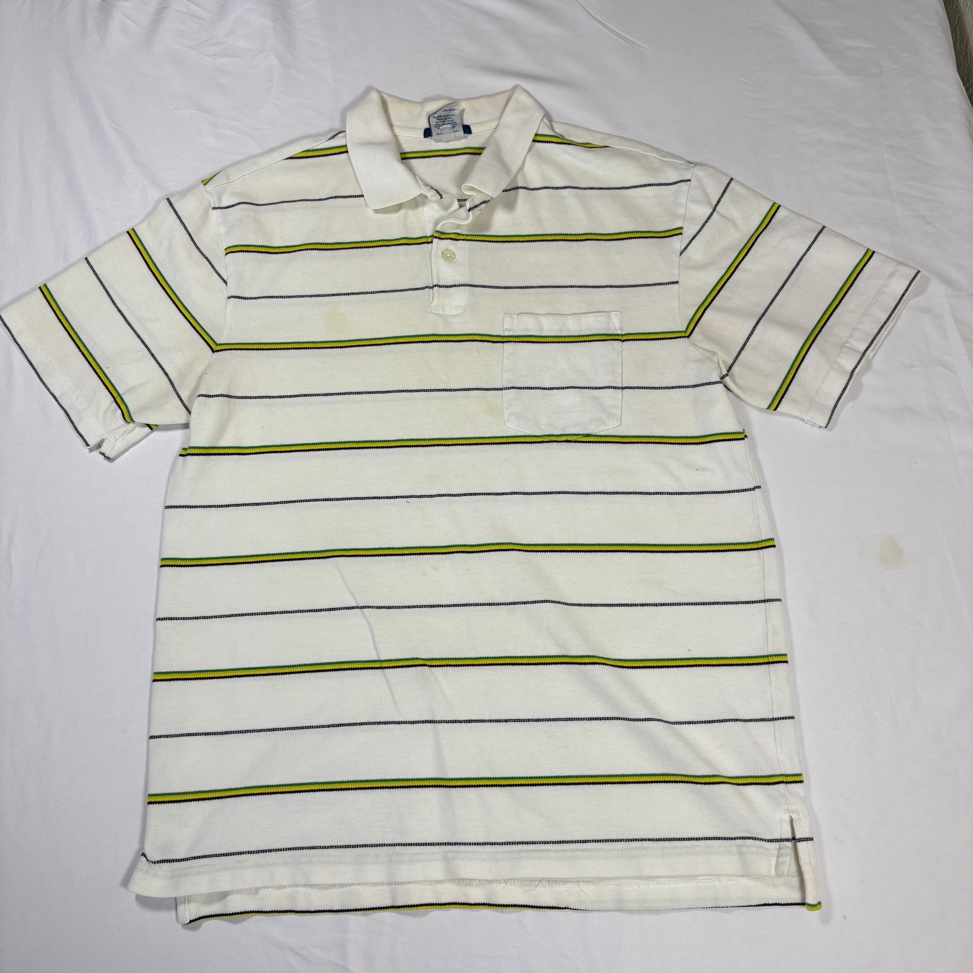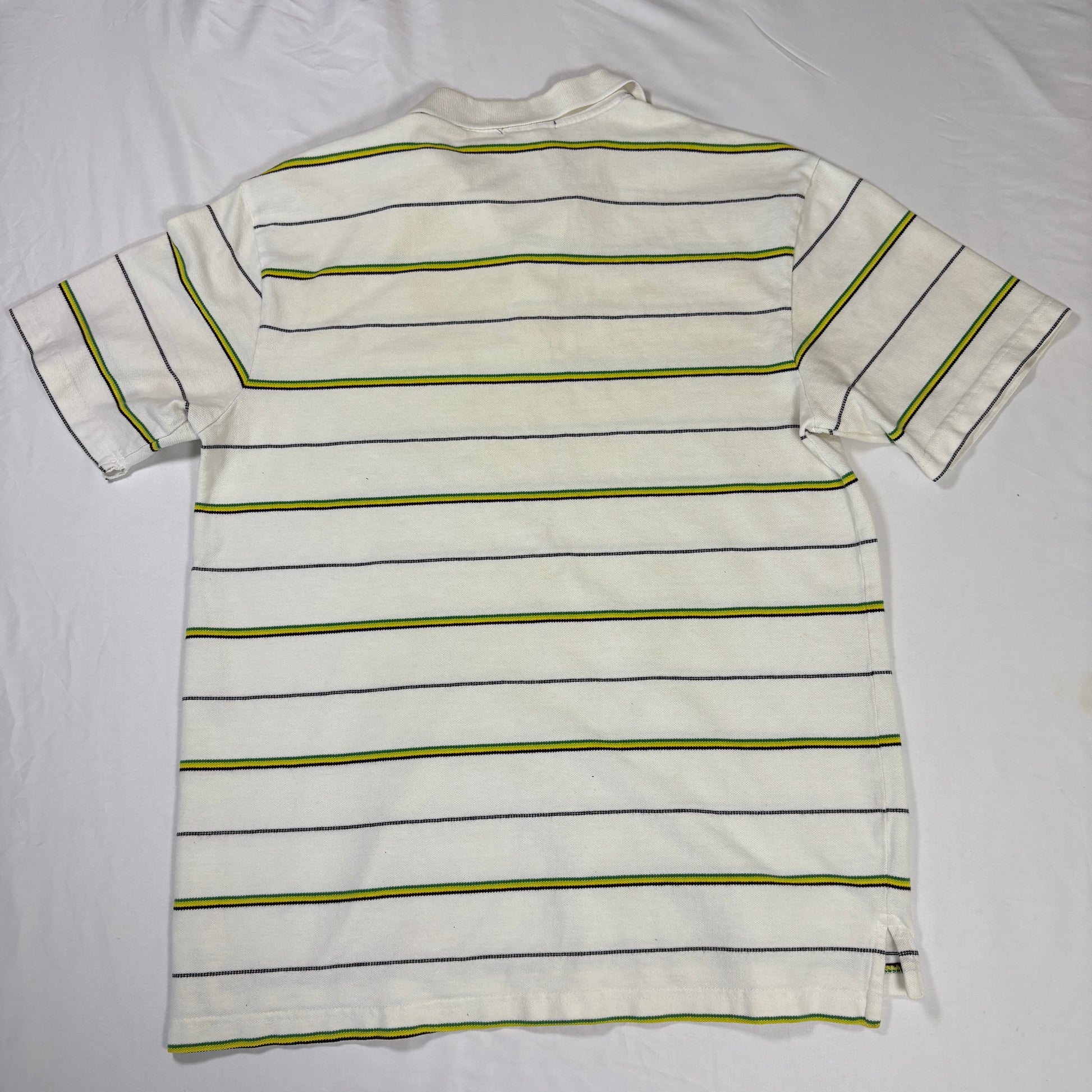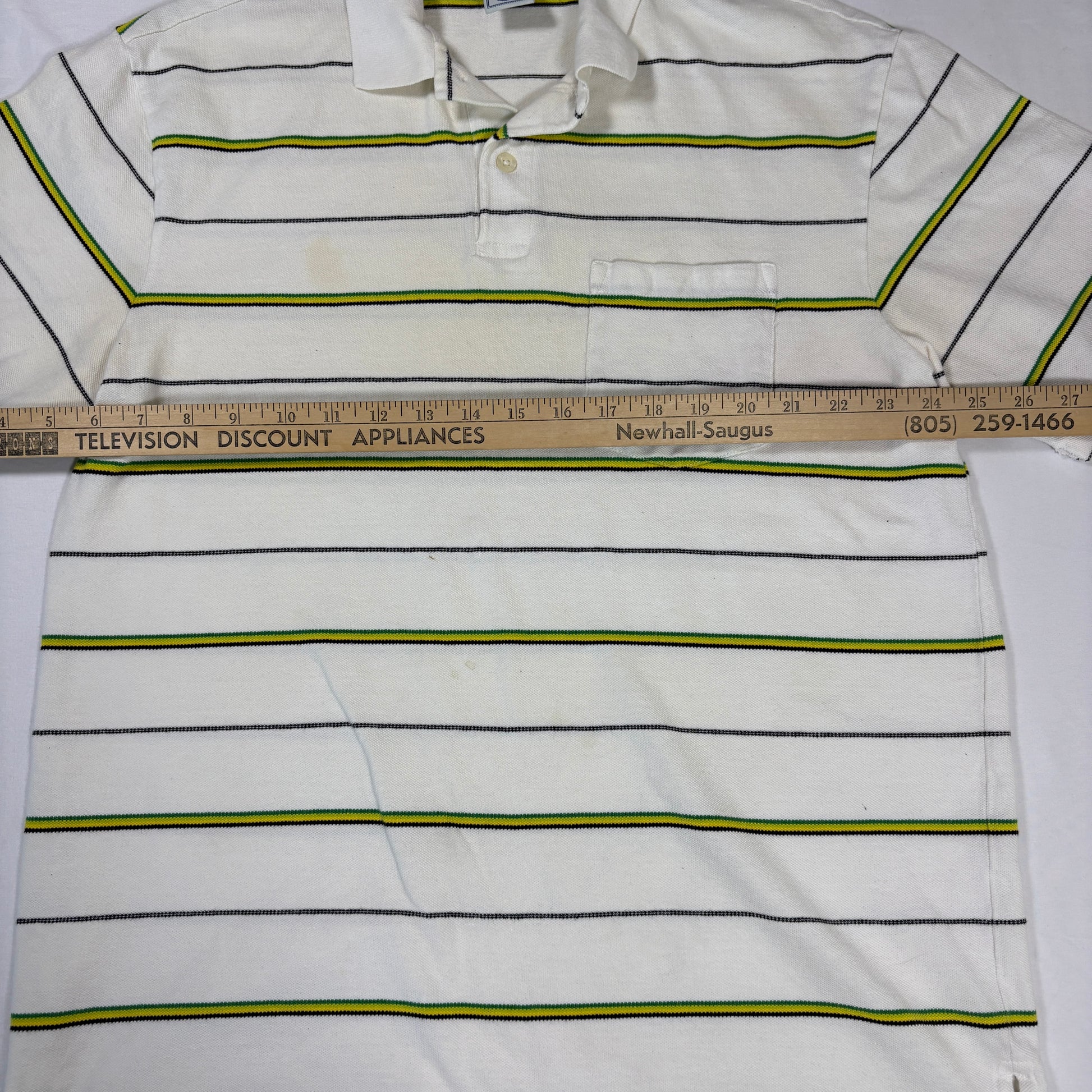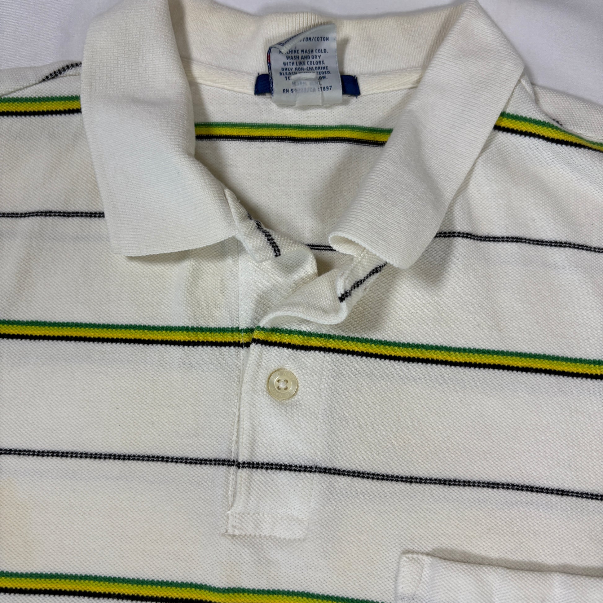 Old Navy Polo Shirt Men’s Medium White Striped Short Sleeve Pocket Regular Fit