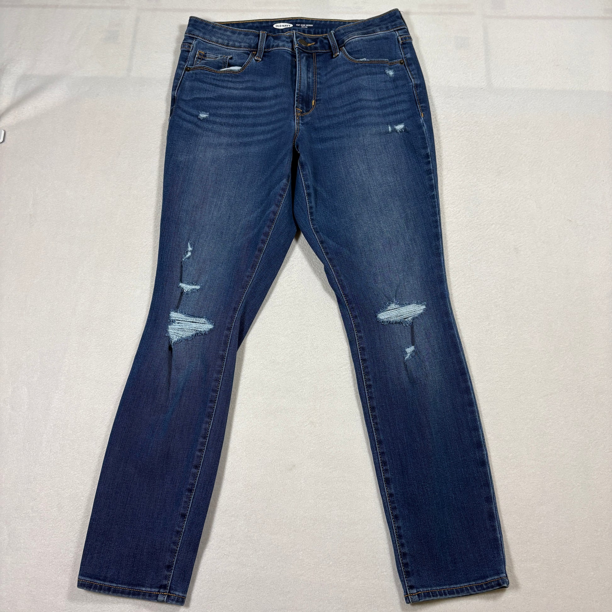 Old Navy Pop Icon Skinny Jeans Womens 8 Short Blue Mid Rise Distressed Denim