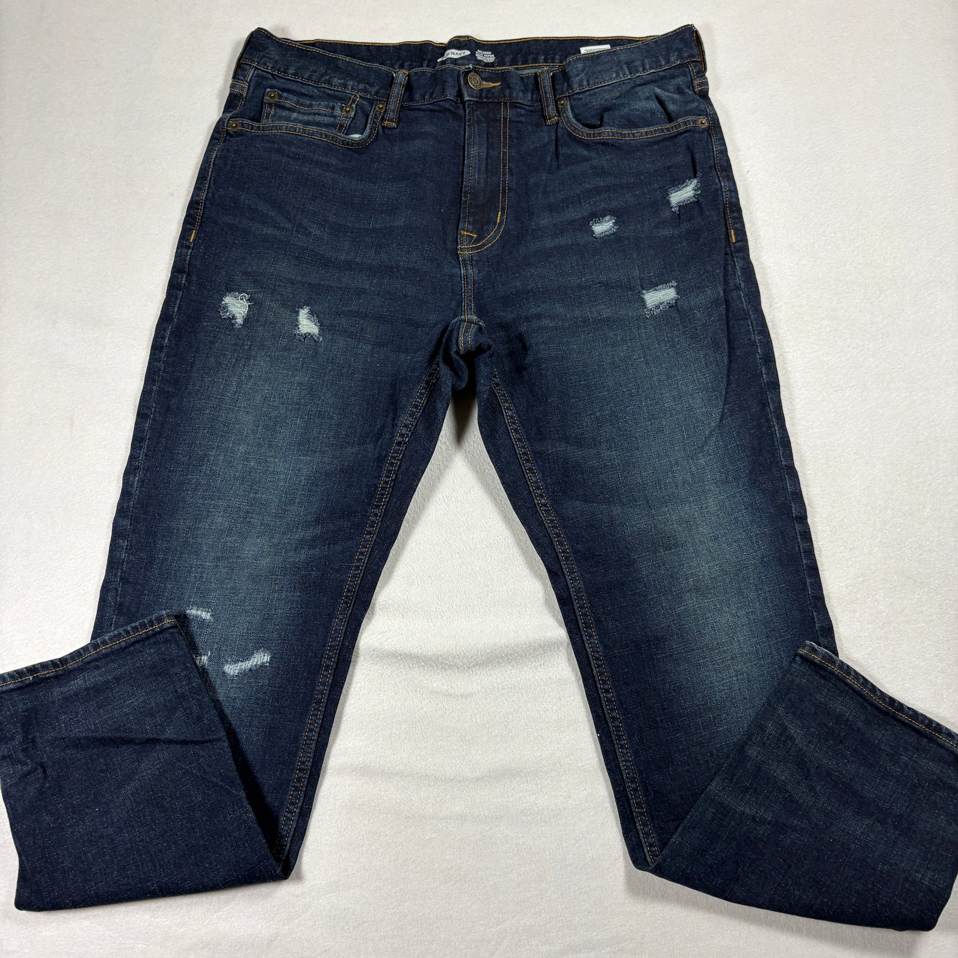 Old Navy Relaxed Slim Taper Jeans Mens 36x30 Dark Wash Distressed Built-In Flex
