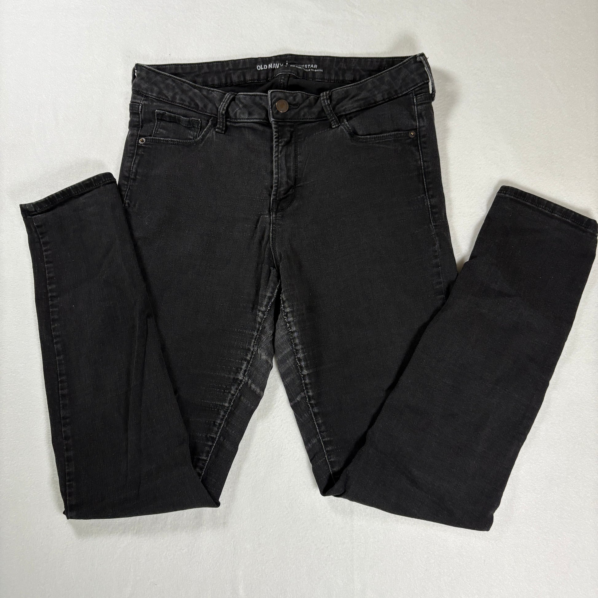 old navy rockstar, skinny black jeans, womens size 12 long, stretch denim pants, mid rise skinny, casual everyday jeans