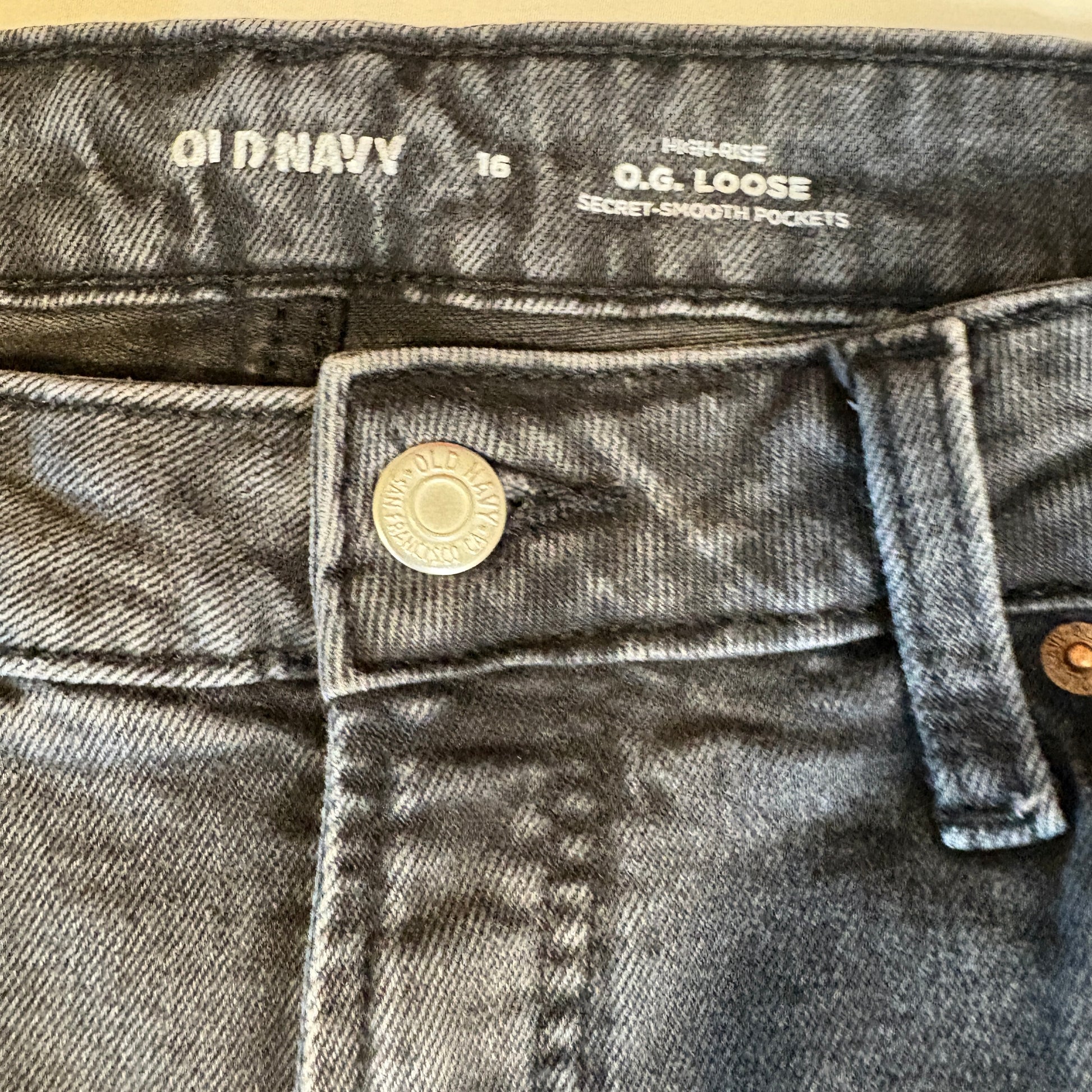 Old Navy baggy jeans, women’s gray loose fit denim, high rise stretch casual pants, relaxed fit jeans, O.G. Loose Old Navy