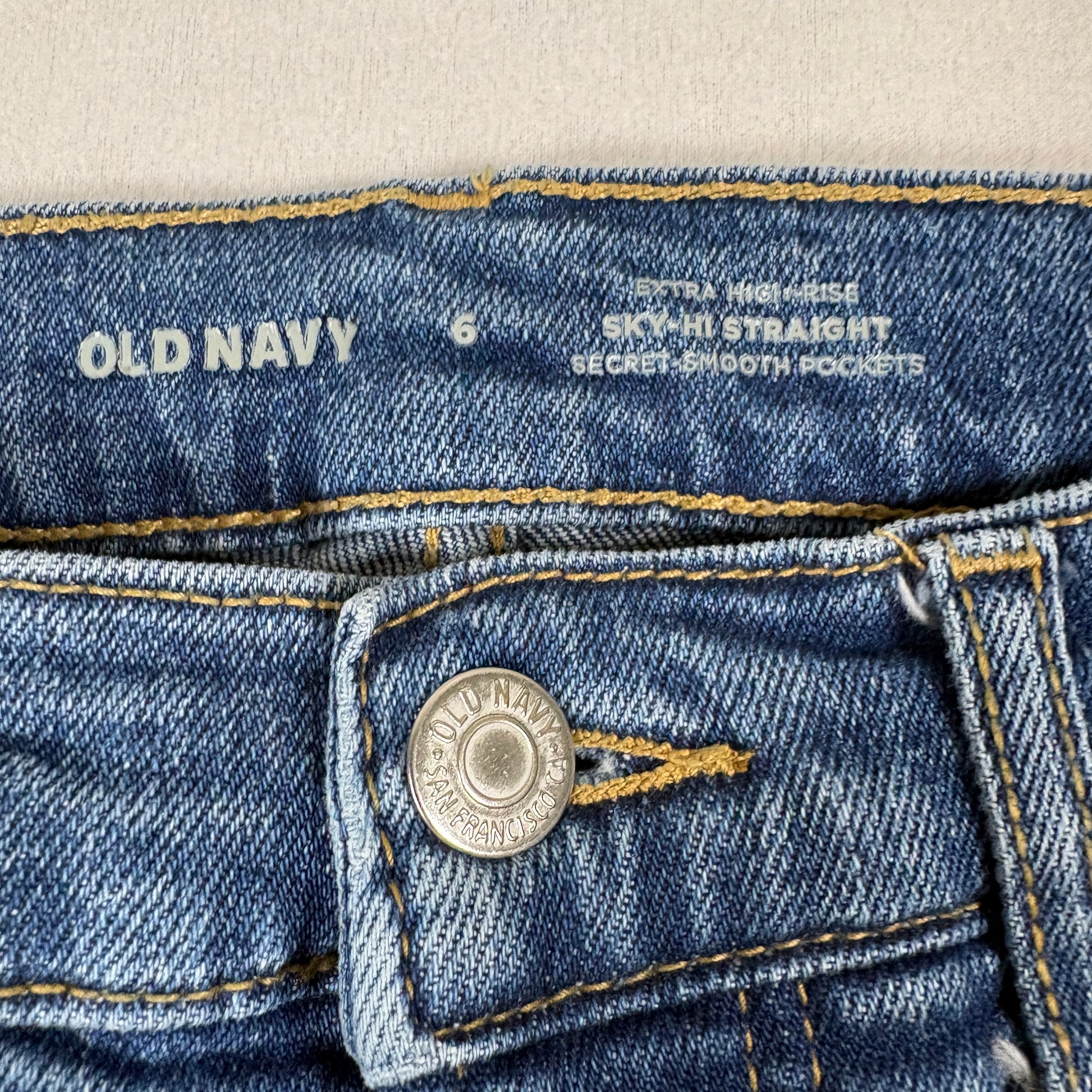 Old Navy Womens Jeans Size 6 Blue Distressed Denim Sky Hi Straight Y2K Grunge