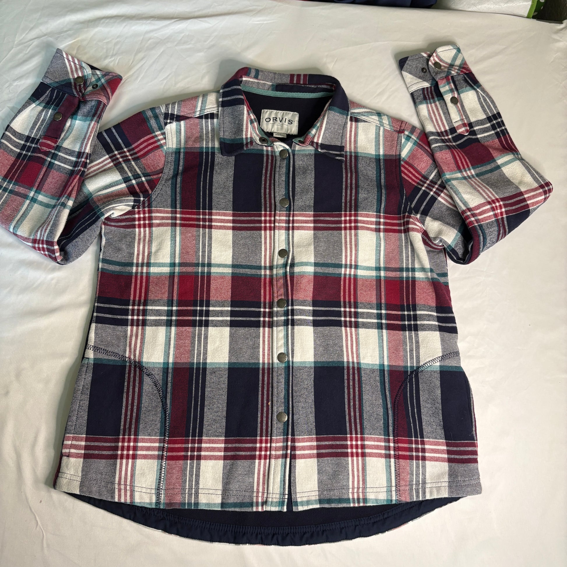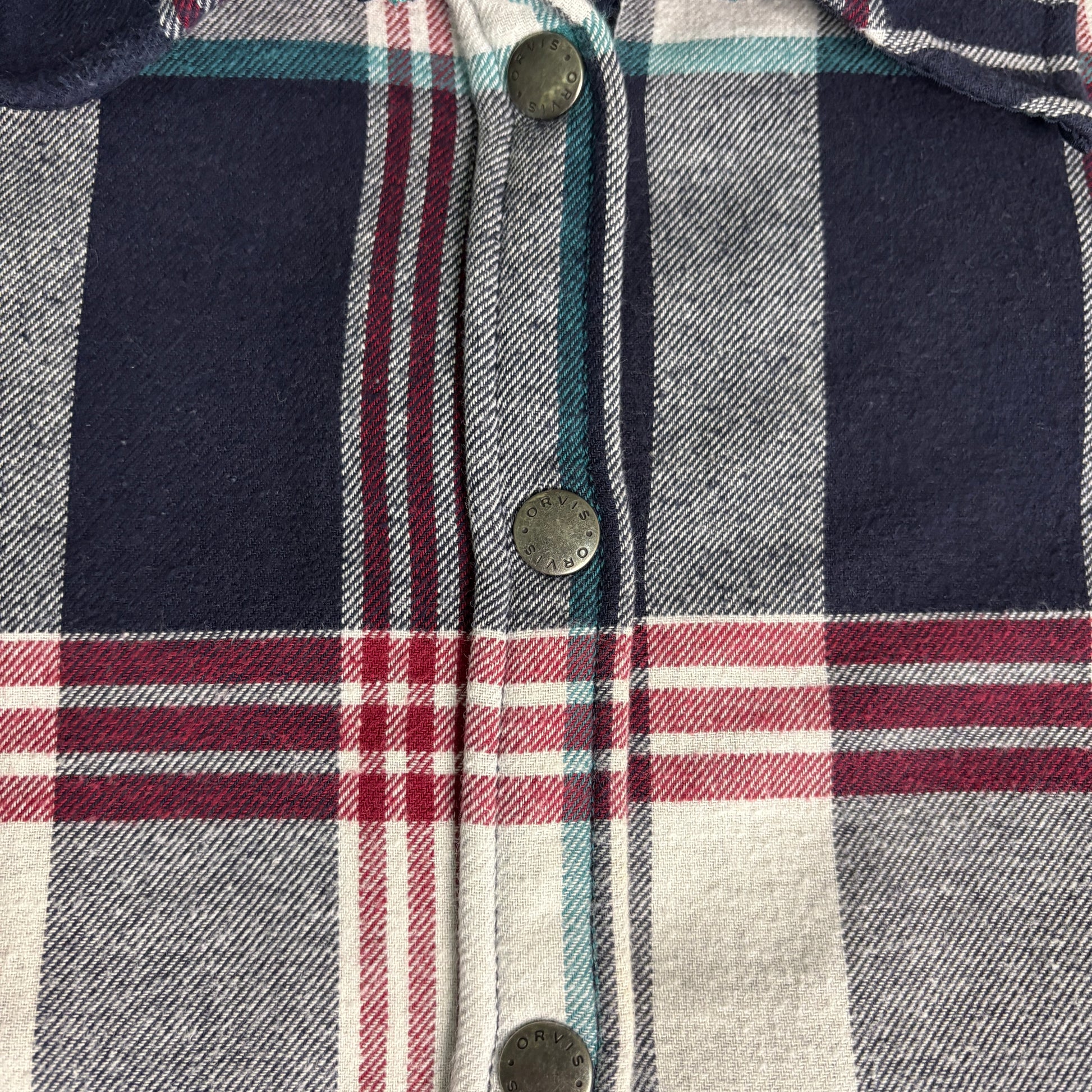 Orvis men’s large plaid flannel shirt jacket outdoor snap button warm casual classic