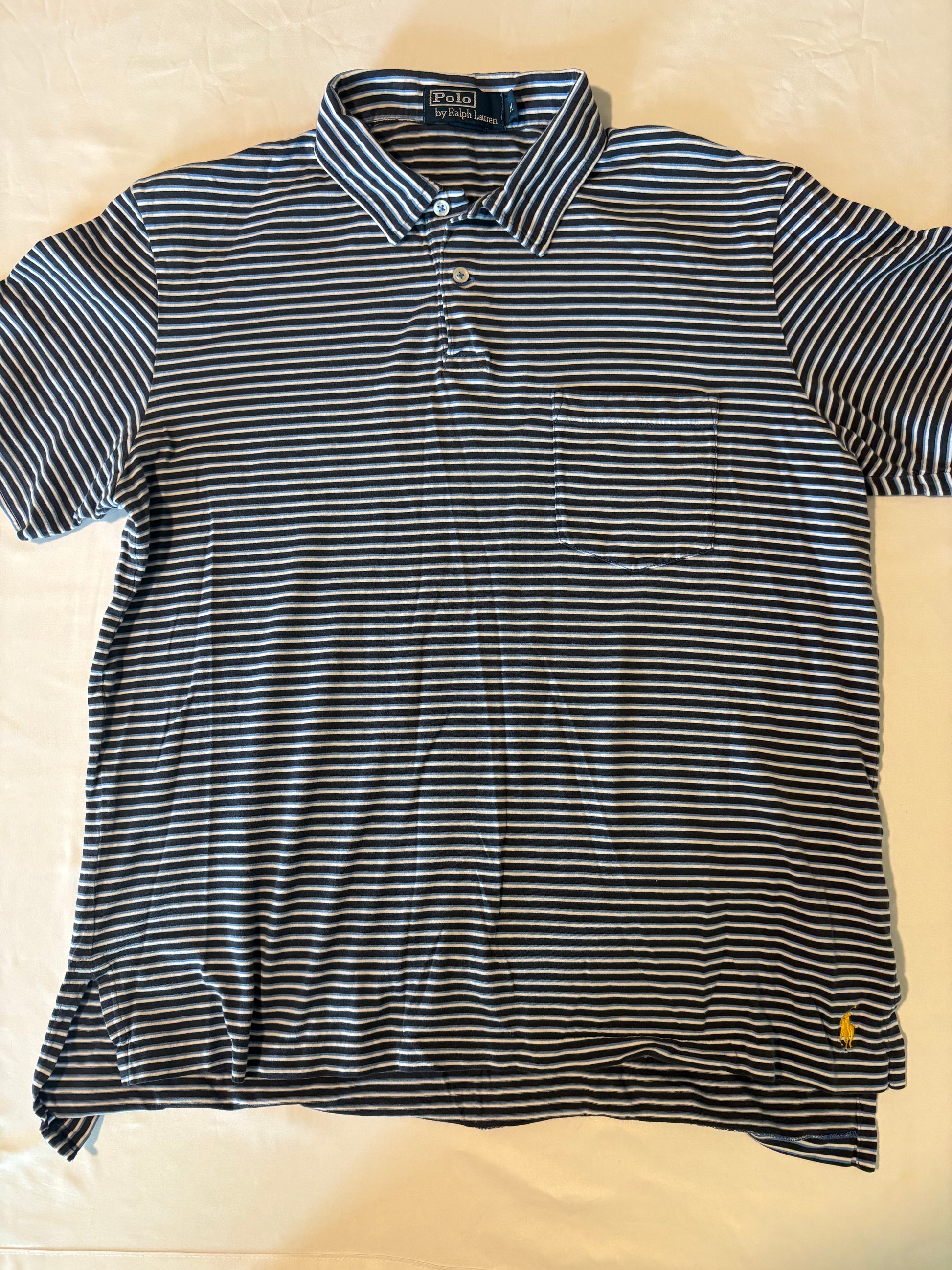 Polo by Ralph Lauren Men’s Shirt M Navy Blue Striped Short Sleeve Pocket Classic Fit