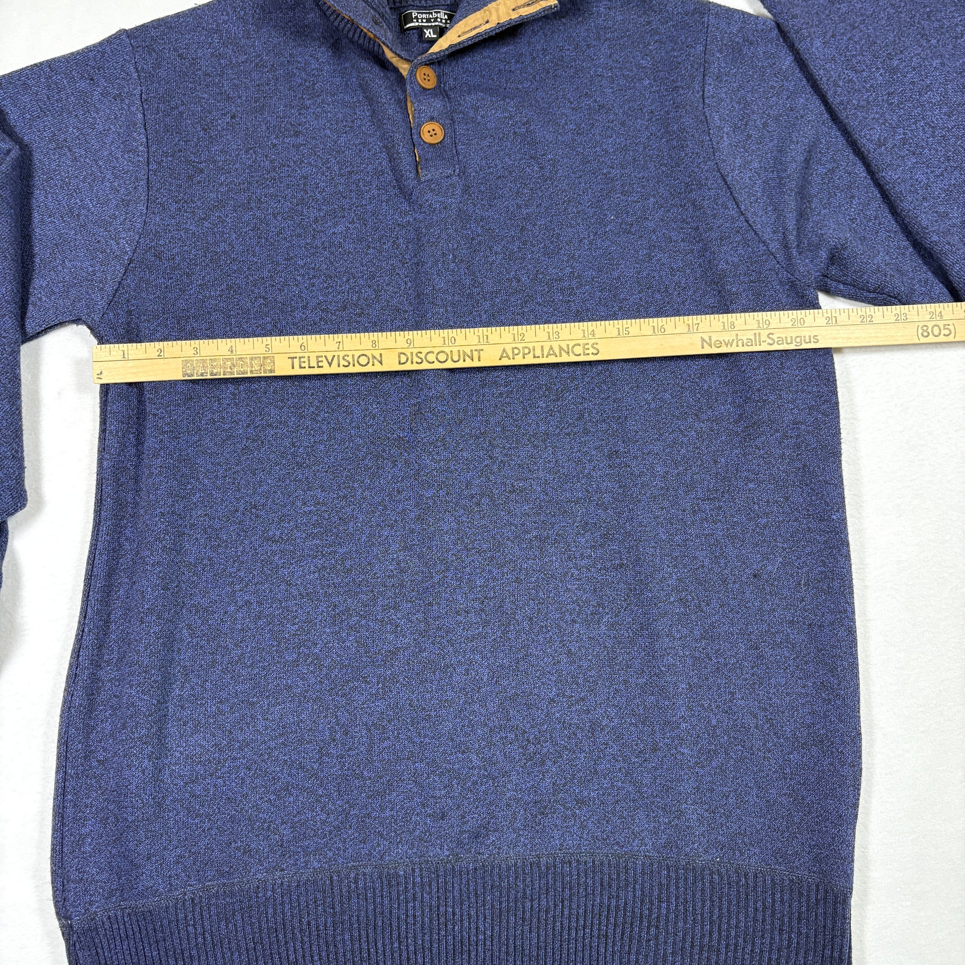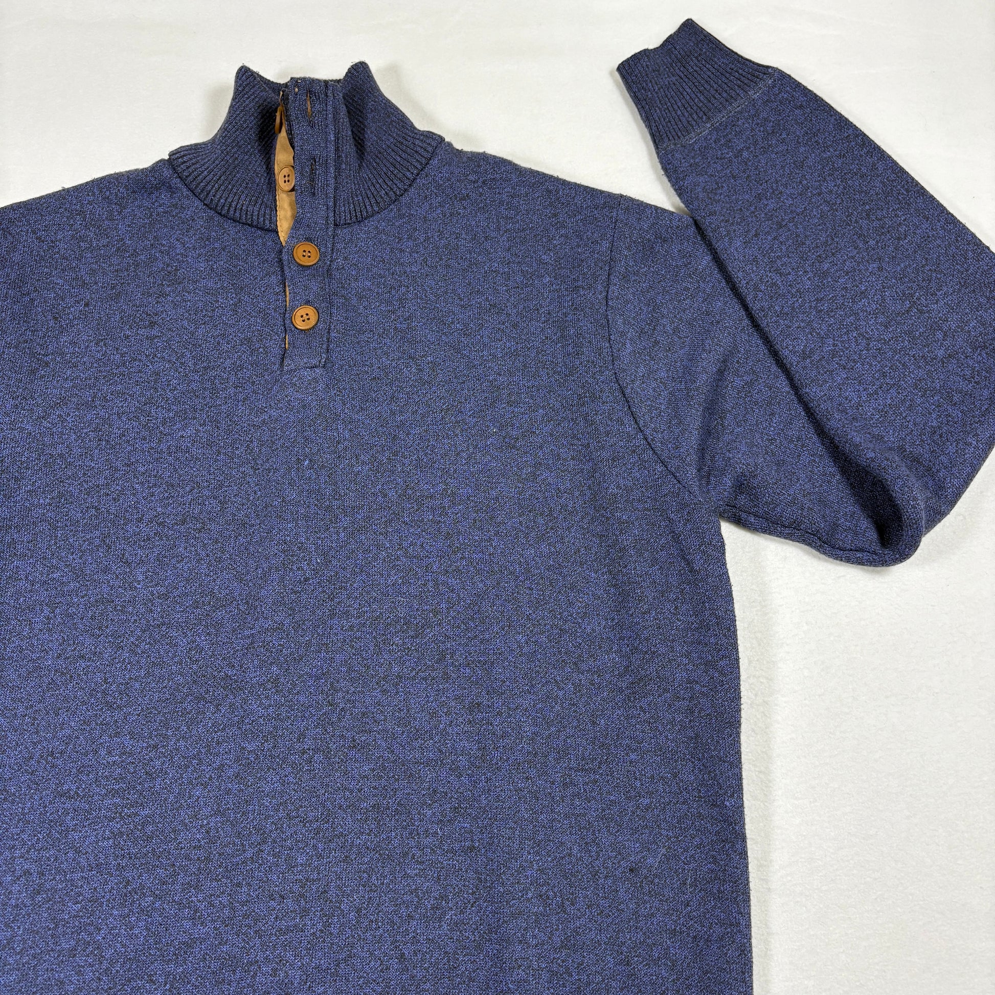 portabella sweater, mens blue knit, xl pullover, vintage casual sweater, quarter button, classic