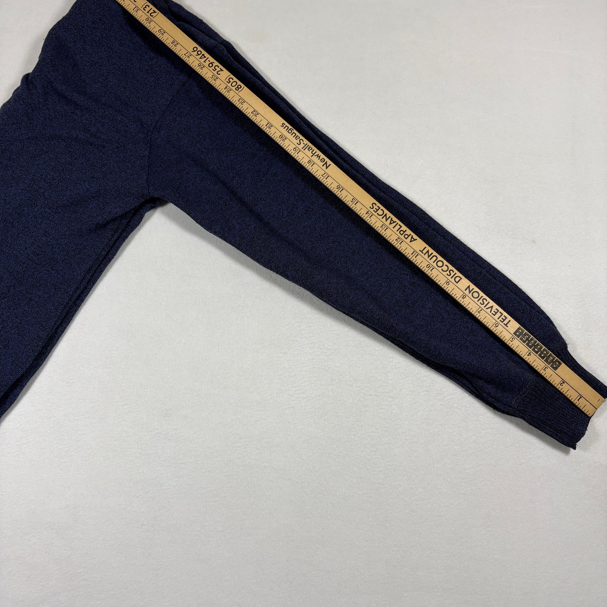 Classic Portabella New York men’s XL knit pullover sweater in a rich blue heather tone. Features a quarter-button placket with contrasting tan trim and brown buttons, ribbed cuffs and hem, and timeless casual design. Perfect for layering in cooler weather or adding vintage-inspired style to your everyday look.