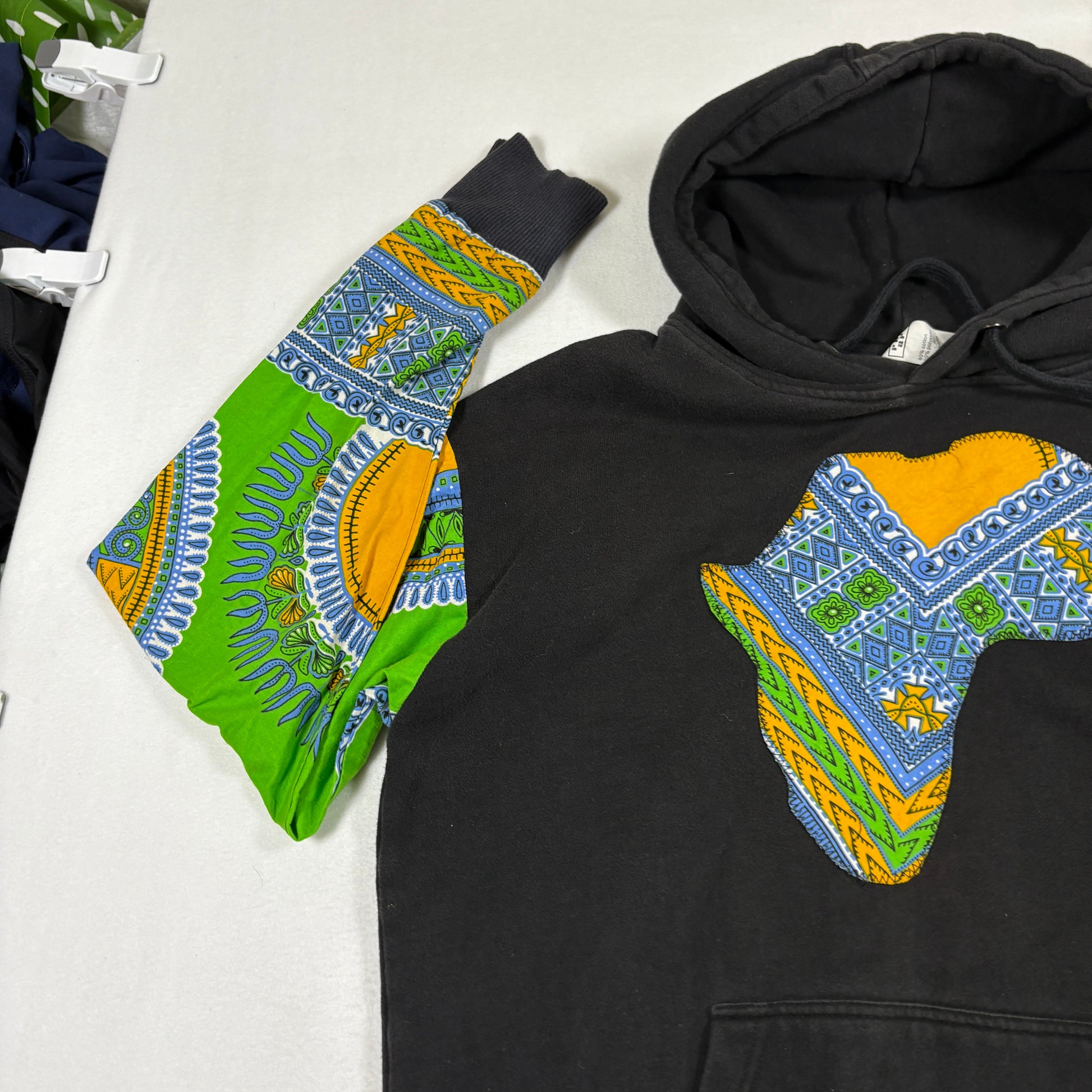 Unique Prep By hoodie featuring bold dashiki-patterned sleeves and Africa applique design on the chest. Soft cotton-blend pullover with classic kangaroo pocket and adjustable drawstring hood. Standout streetwear piece that blends cultural style with comfort—perfect for casual wear or layering.