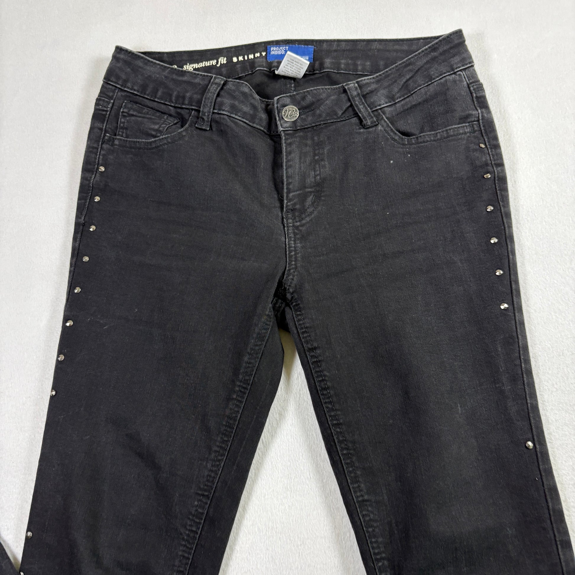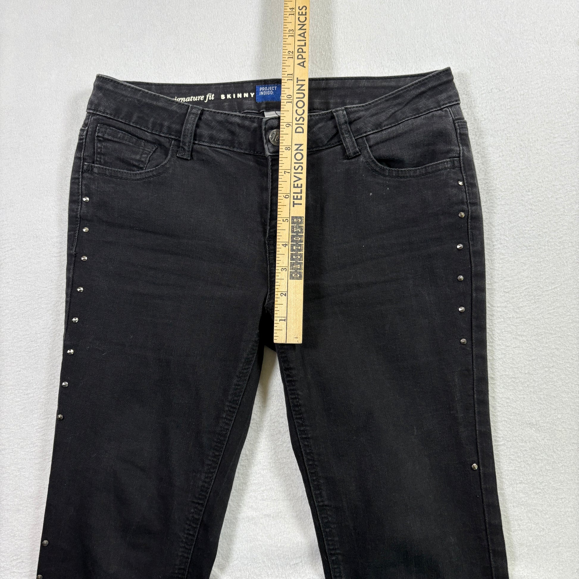 Project Indigo Womens Jeans Size 2 Black Skinny Studded Denim Y2K Grunge Pants