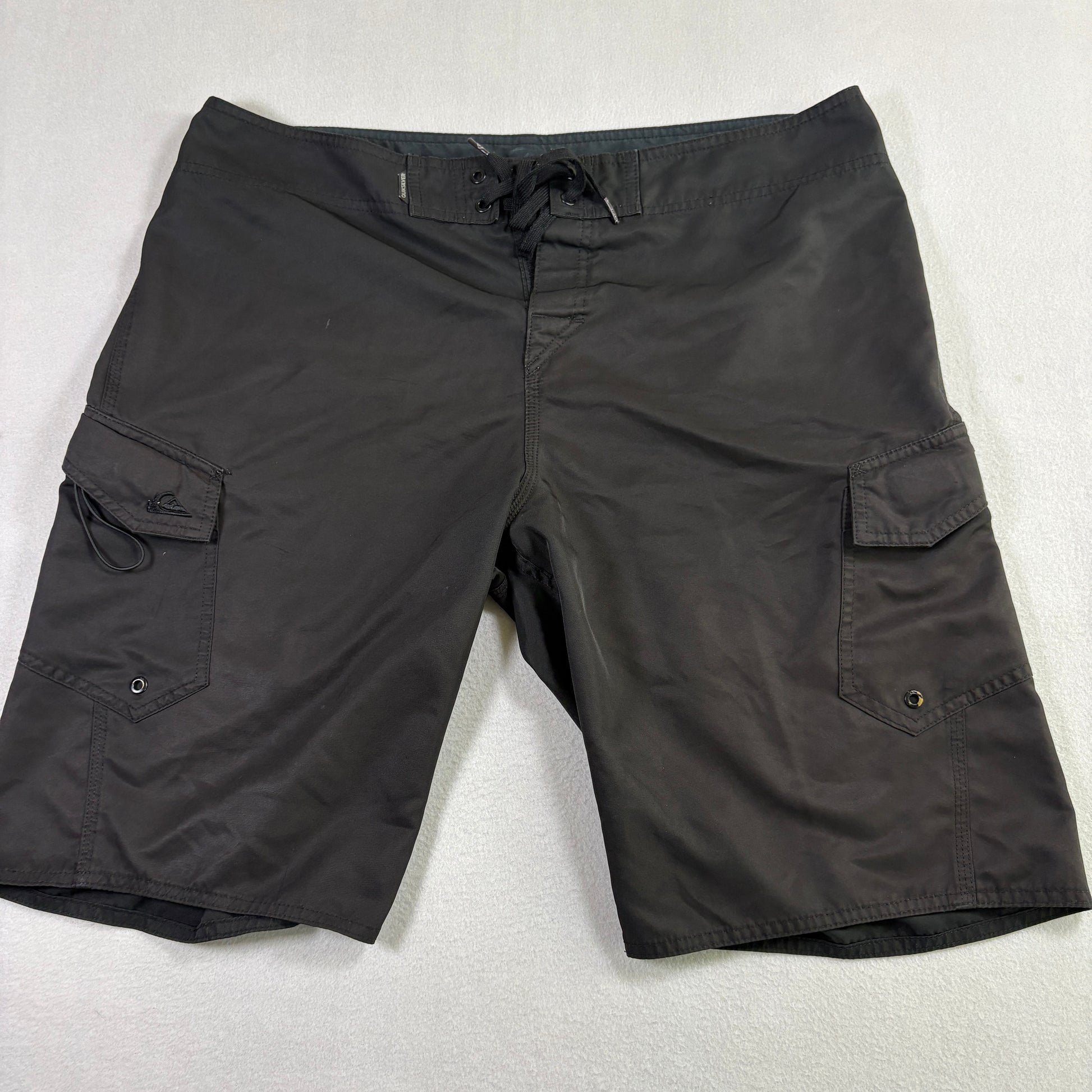Quiksilver, mens board shorts, size 36, black cargo, surf shorts, swim, Y2K grunge