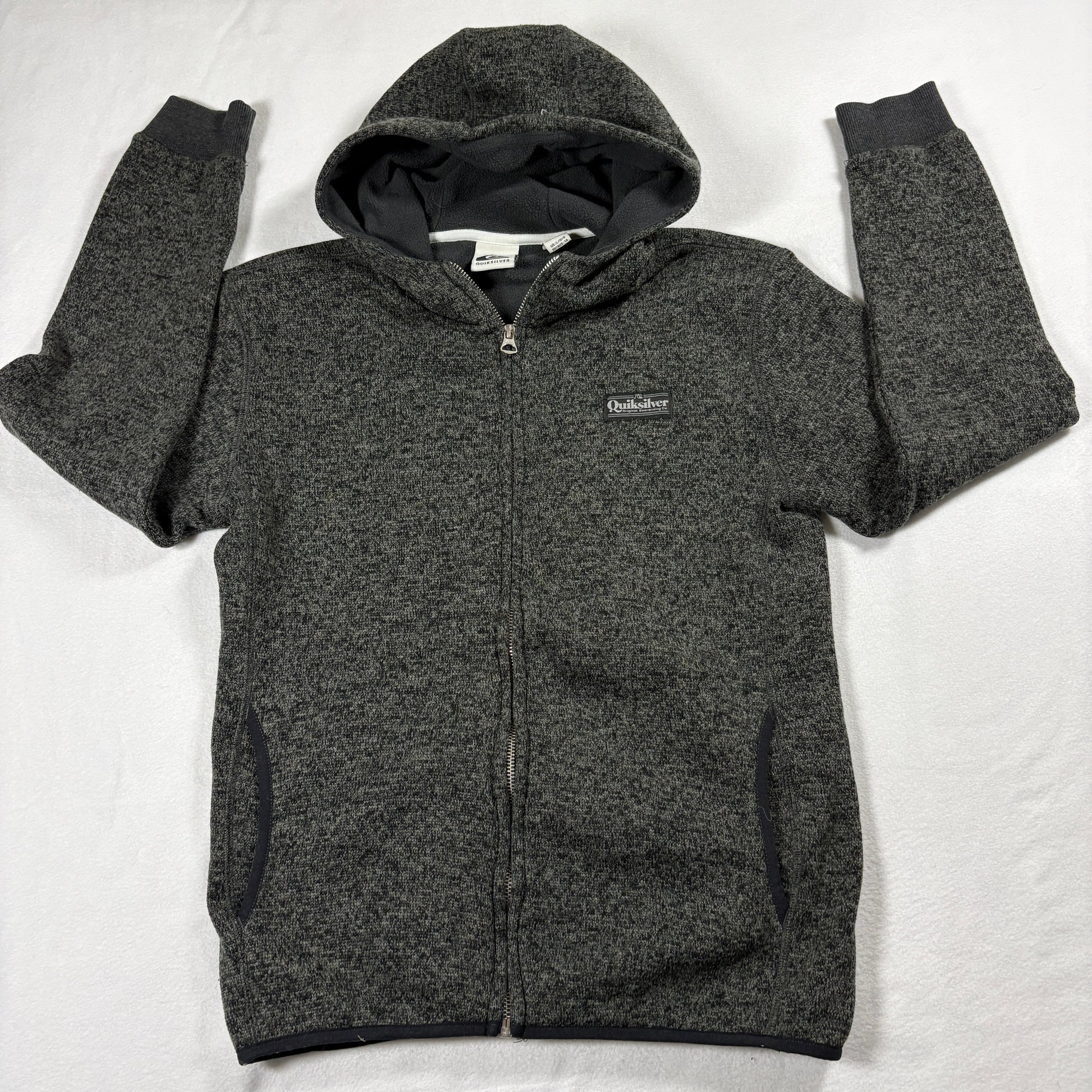 Quiksilver Mens Hoodie Large Gray Full Zip Fleece Lined Sweatshirt Surf Skater