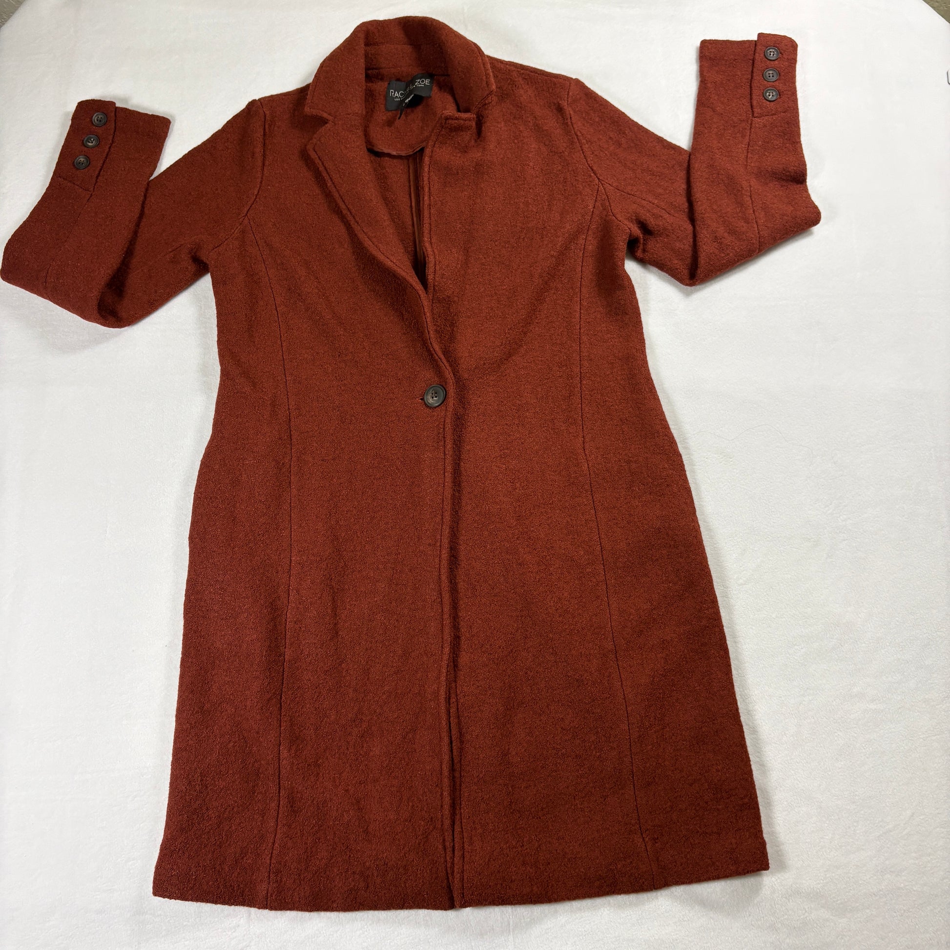 Rachel Zoe Wool Coat Womens S Rust Brown Long Button Minimalist Chic Winter Cozy