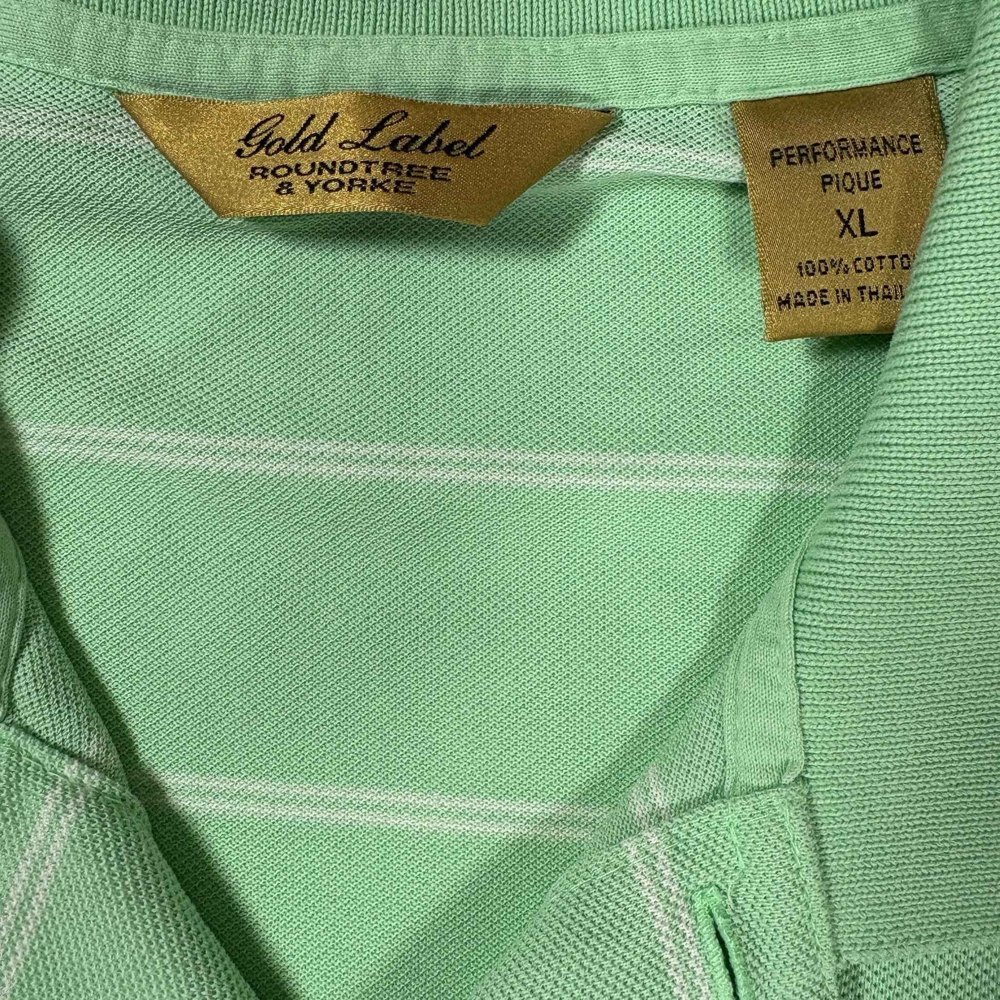 Keywords for eBay SEO: Roundtree & Yorke XL polo, Gold Label striped shirt, men’s golf shirt, cotton pique polo, green casual shirt, classic fit polo, summer short sleeve top