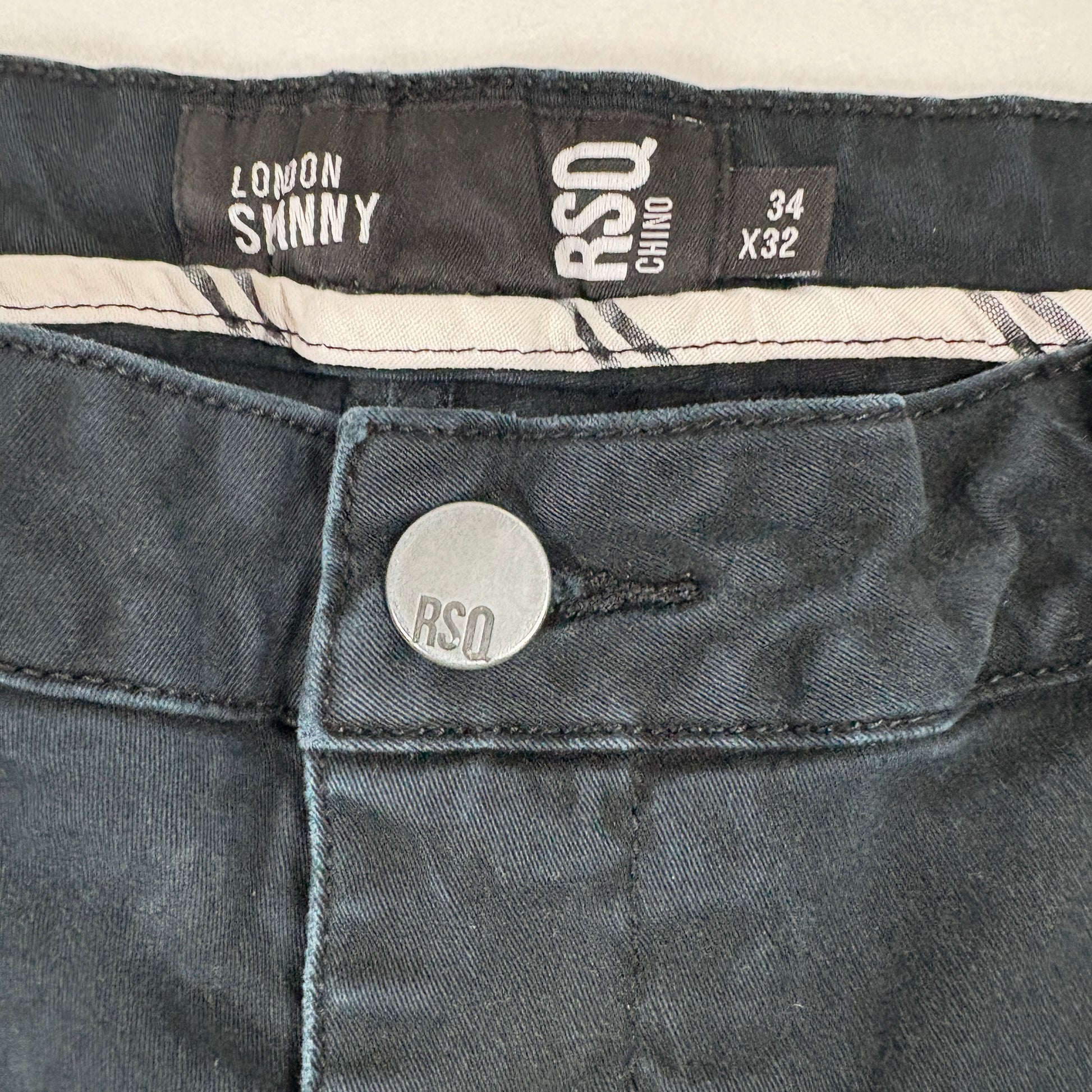 RSQ Mens Chino Pants 34x32 Black London Skinny Slim Fit Casual Y2K Streetwear