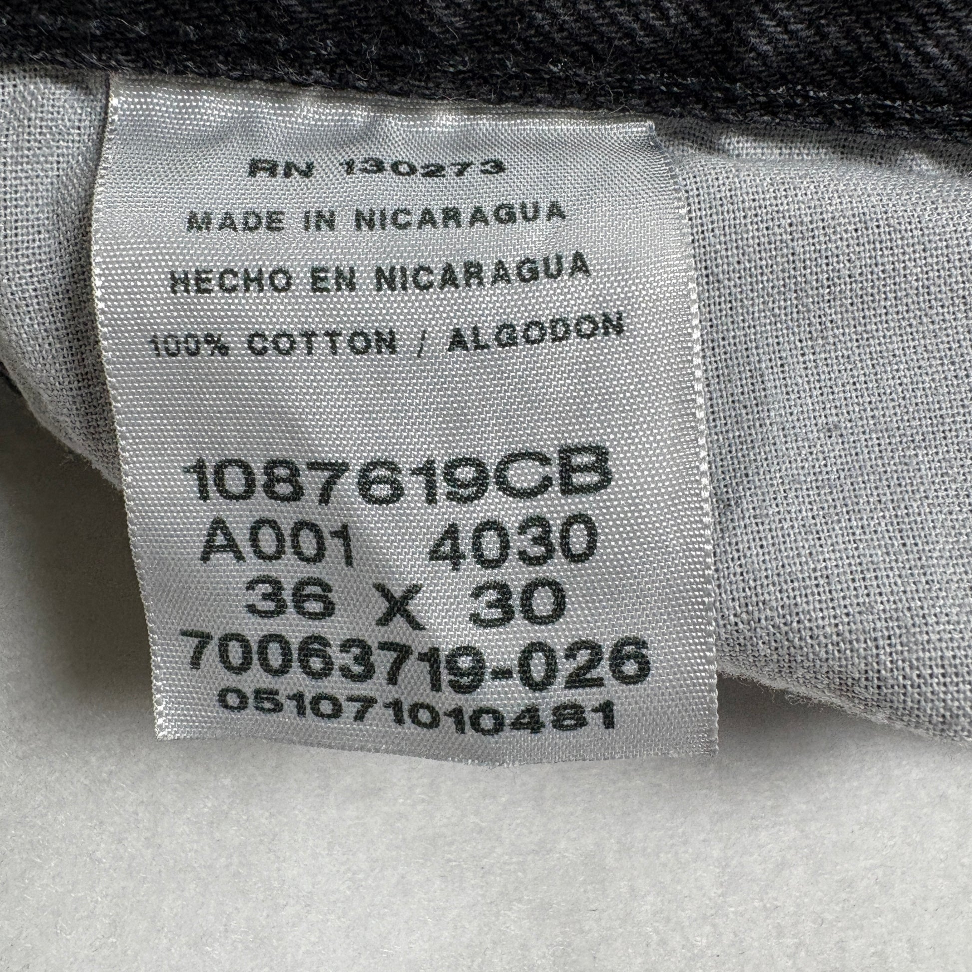 Vintage-style Rustler men’s jeans in black denim. Made of durable 100% cotton, these jeans feature a straight leg cut, traditional five-pocket styling, and button/zip fly closure. Tag size 36x30. Timeless and rugged, ideal for workwear, casual wear, or retro streetwear looks.