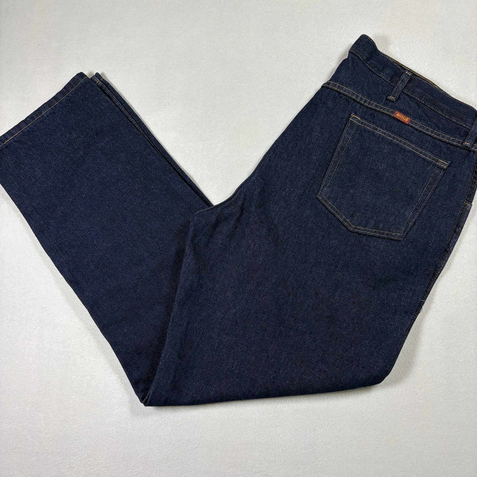 Rustler, Mens Jeans, 42x32, Dark Wash, Denim, Vintage, Y2K, Grunge, Straight Leg, Relaxed Fit, Workwear