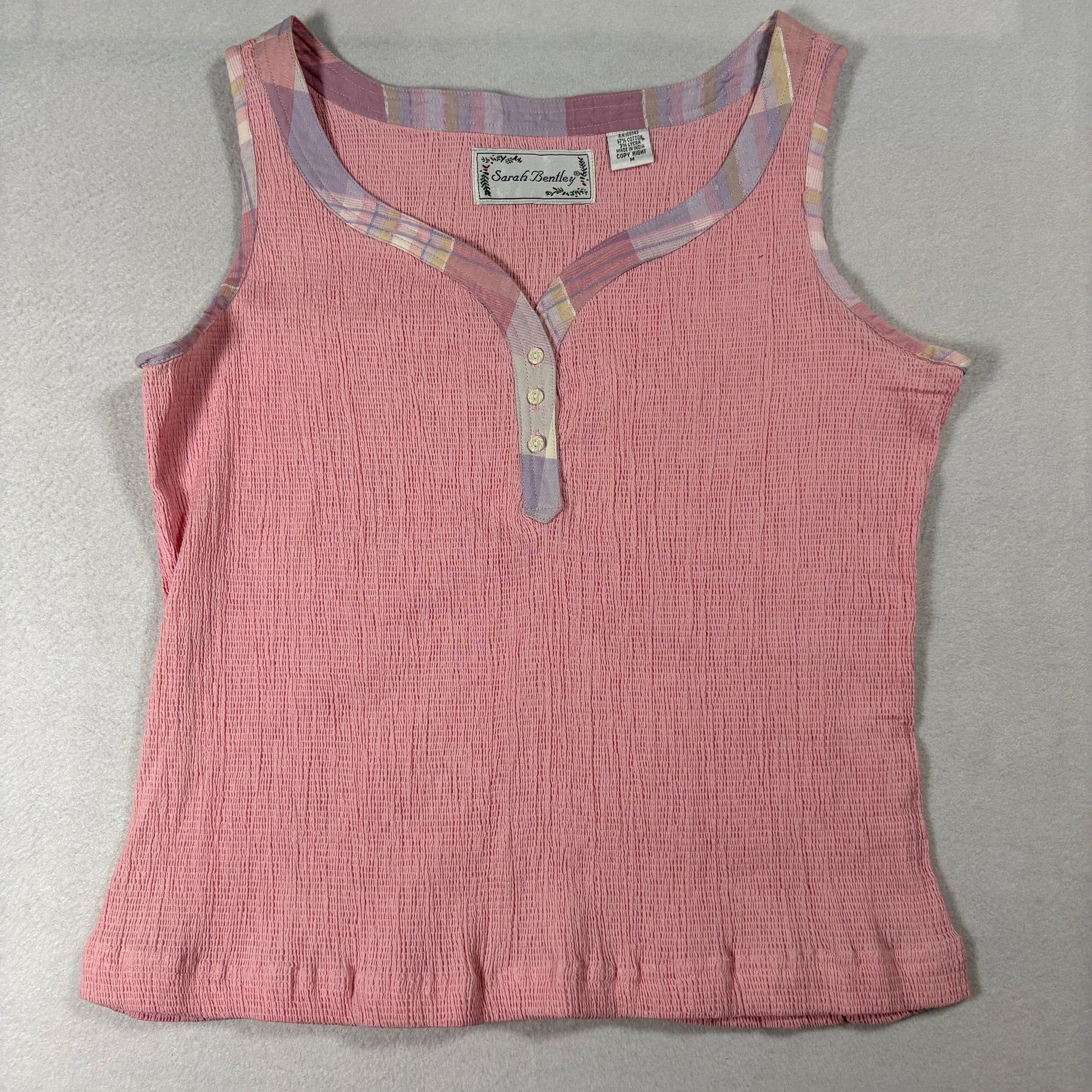 Sarah Bentley Pink Textured Tank Top Womens M Boho Patch Trim Y2K Summer
