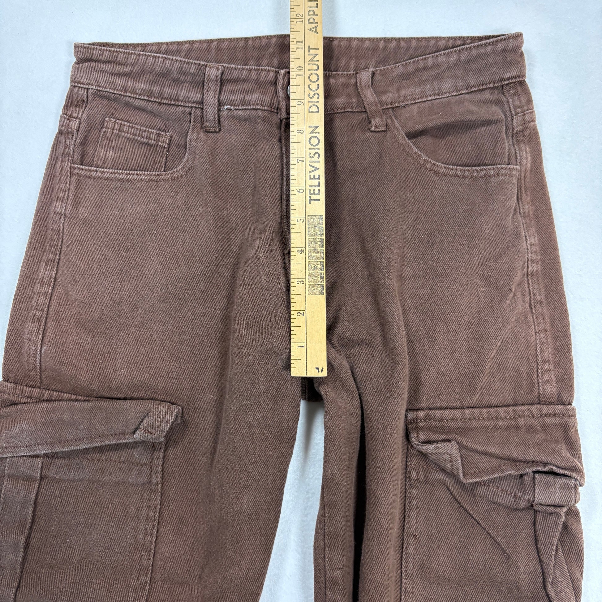 ✓ Brown wash, utility pockets, straight leg baggy fit