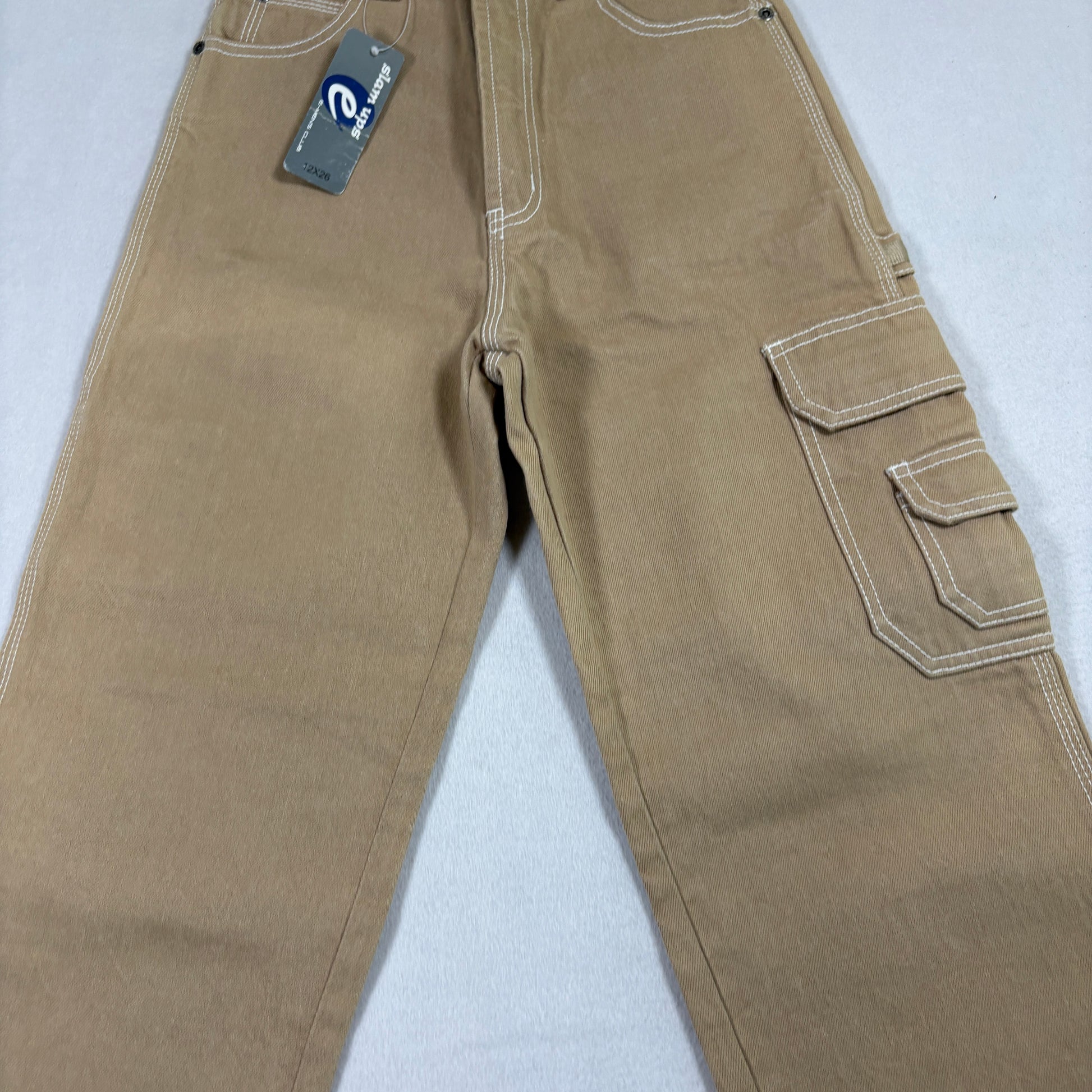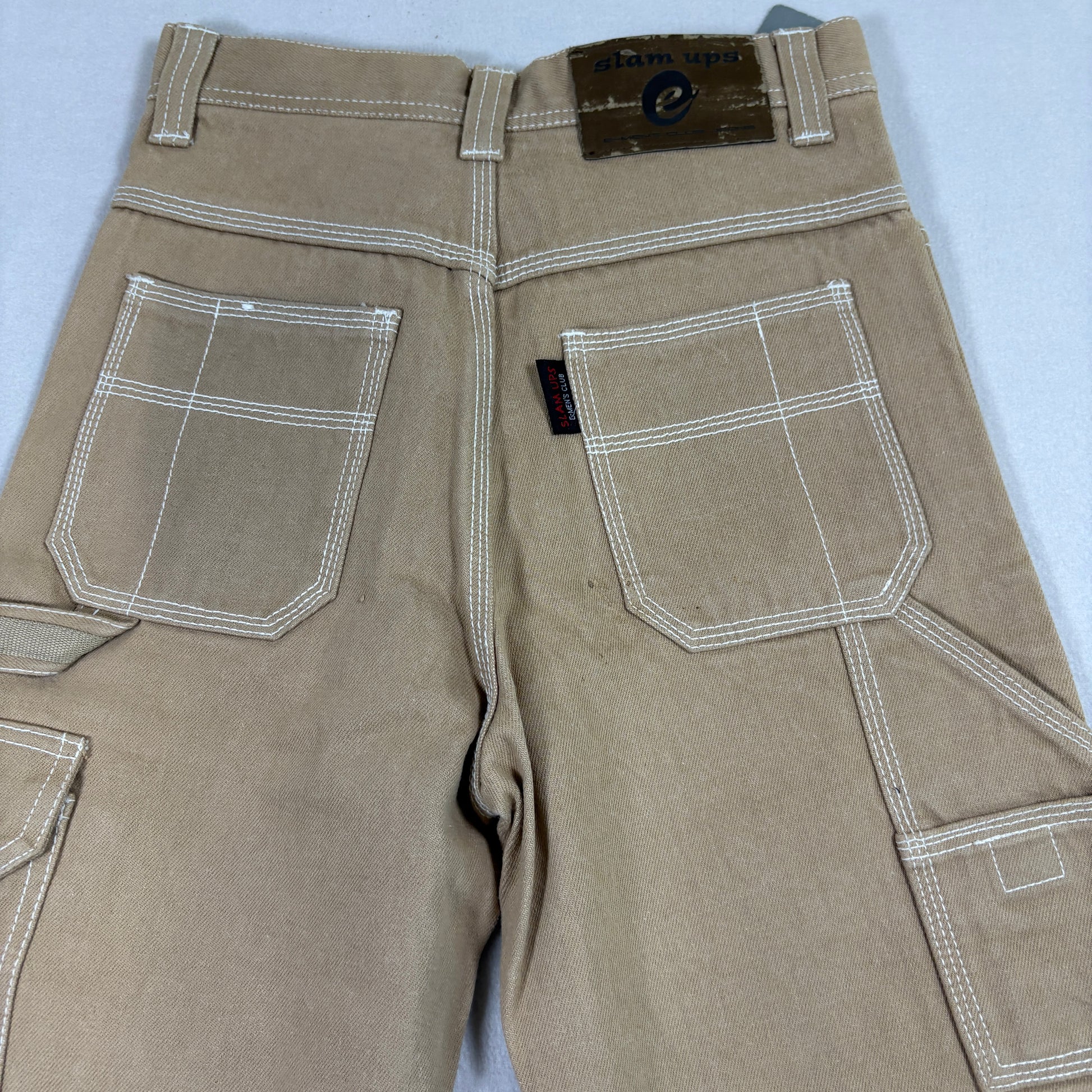 carpenter pants, mens workwear khakis, slam ups jeans, utility pocket pants, tan straight leg, y2k streetwear pants, size 12x26