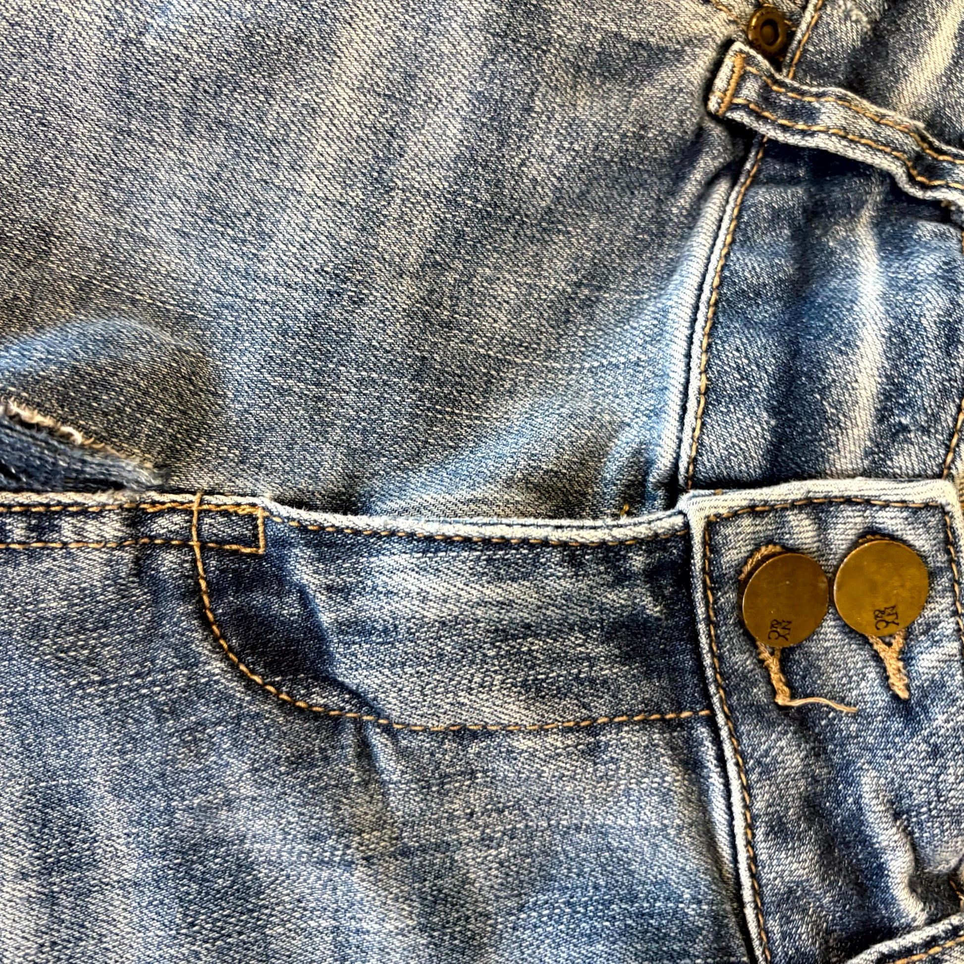 Condition: Pre-owned, in very good condition with intentional distressing. No holes or stains beyond design elements.