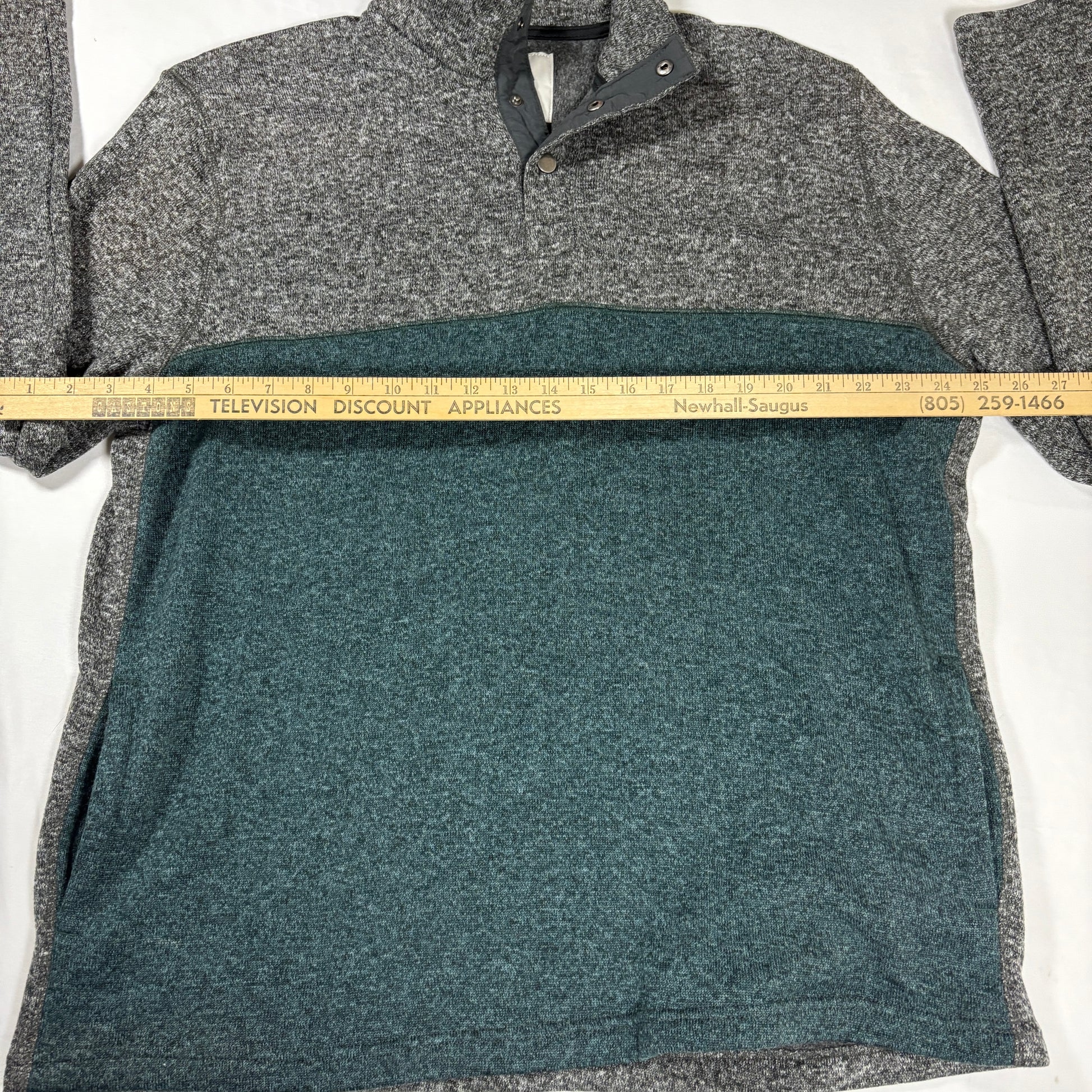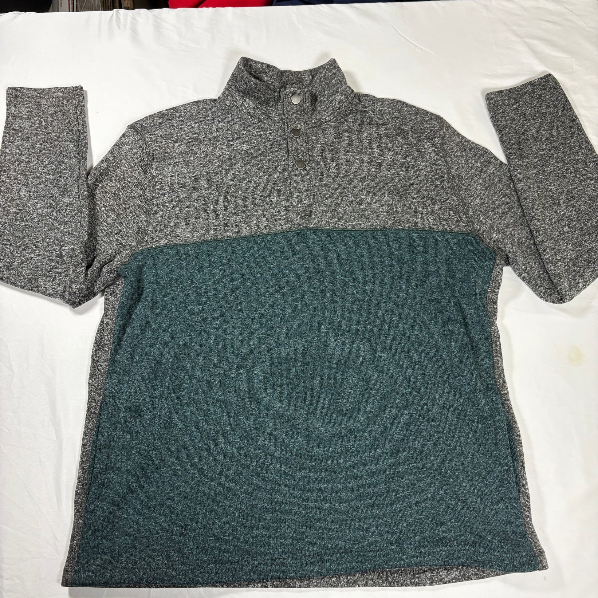 Sonoma Men’s Pullover 2XL Gray Green Fleece Snap Mock Neck Sweater Big Casual