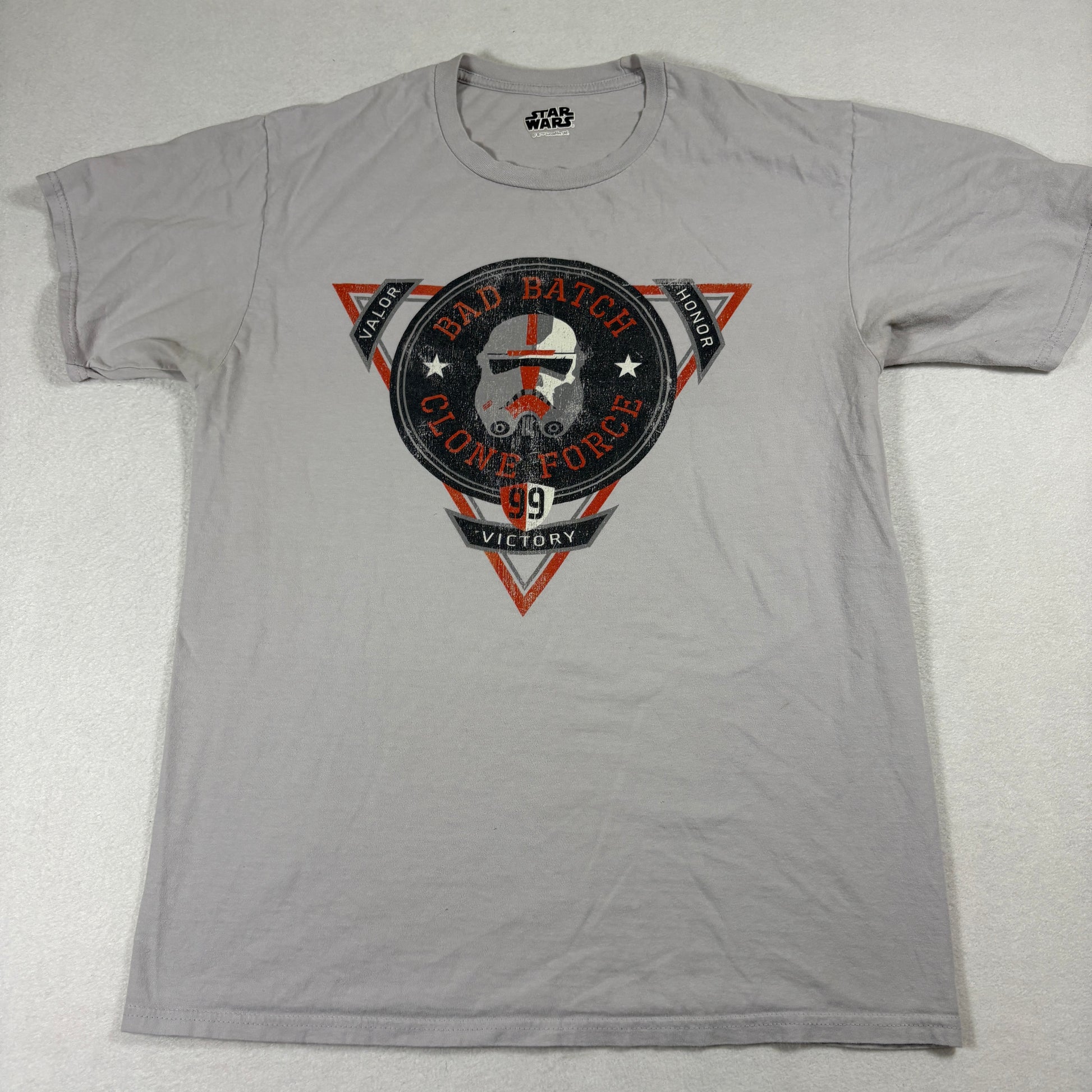 star wars t shirt, star wars tshirt, bad batch tee, clone force 99 shirt, graphic t shirt, sci fi merch, lucasfilm apparel, gray vintage tshirt, mens medium tee