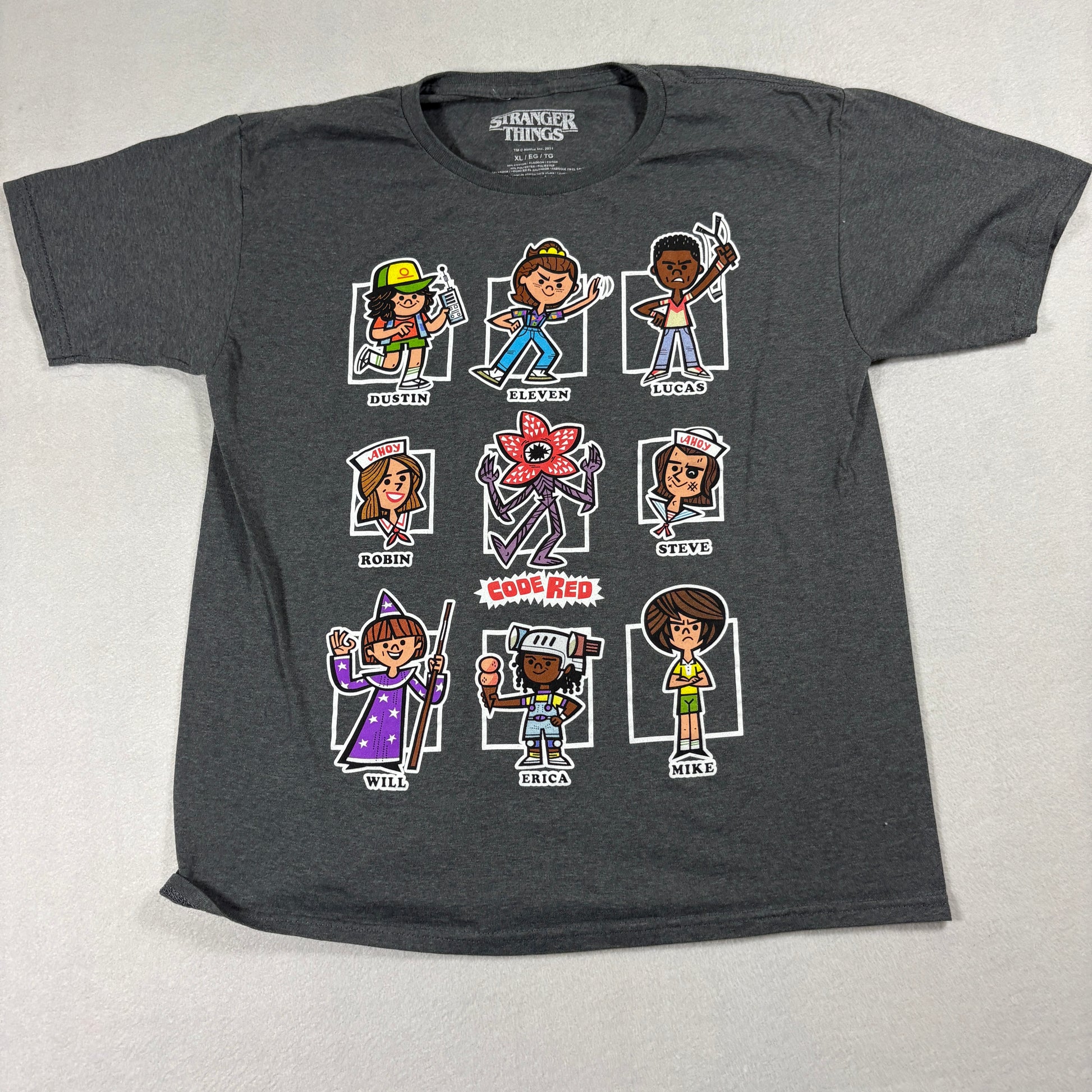 Stranger Things Mens XL Graphic T Shirt 2021 Characters Cartoon Tee Gray Description (under 899 characters):