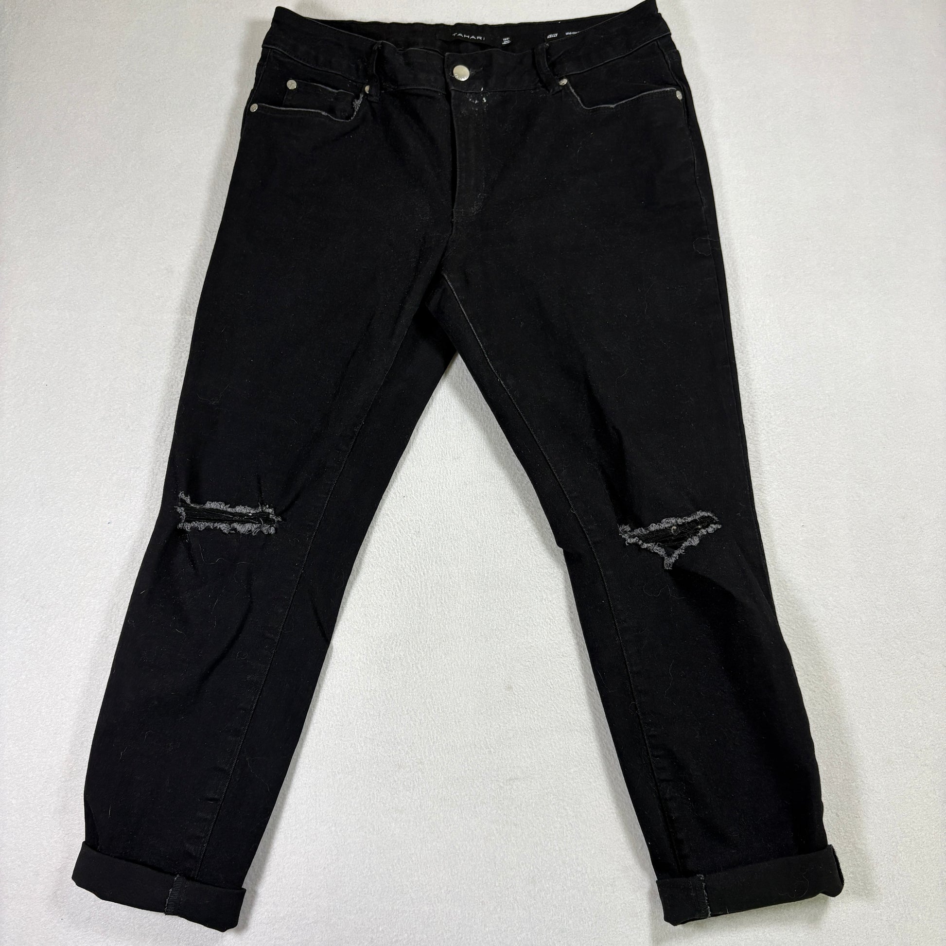 Tahari Women’s Jeans 12/31 Black Kelly Mid Rise Skinny Distressed Knees
