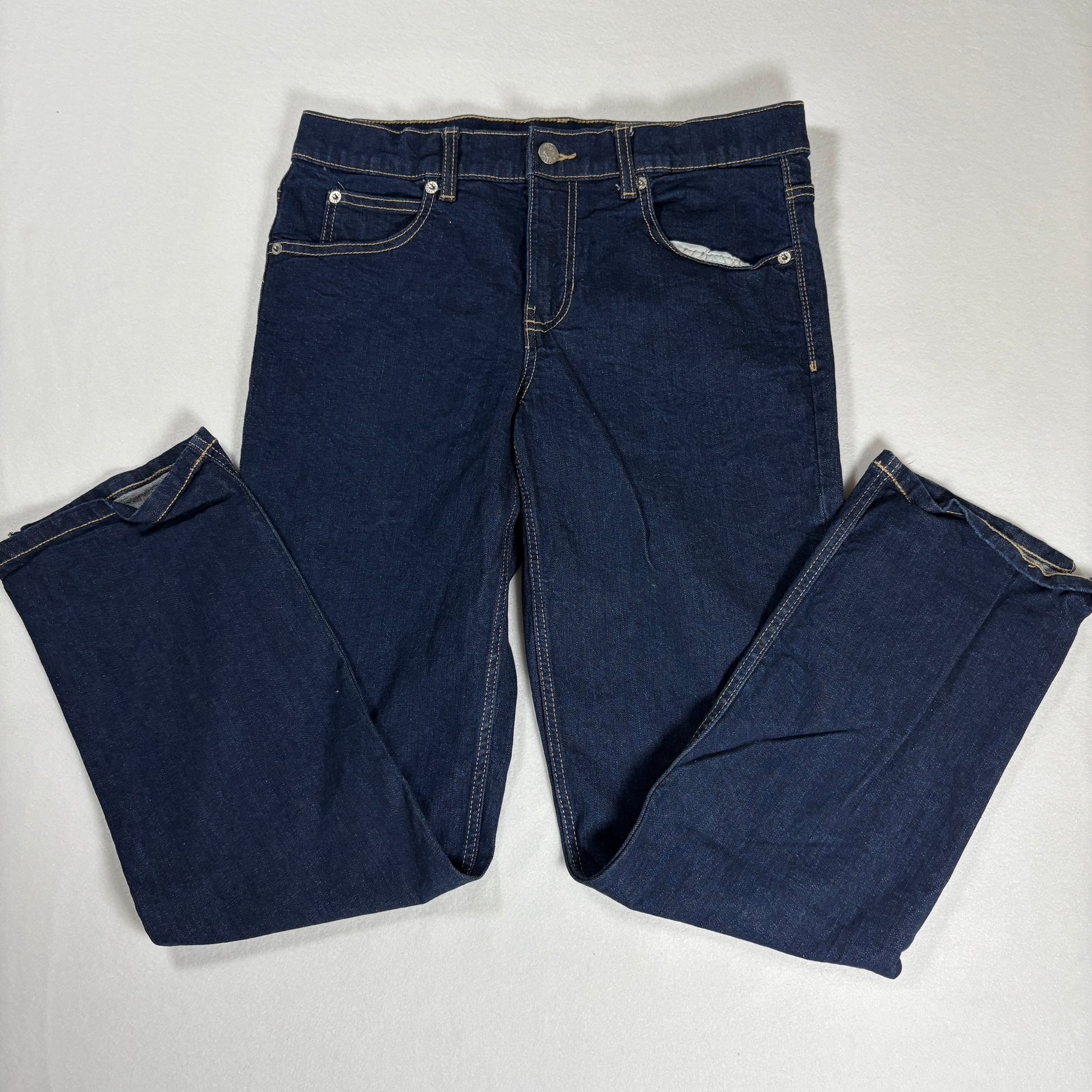 Keywords: Thereabouts boys husky jeans, size 16 straight leg denim, dark wash eco-friendly cotton jeans, school uniform casual